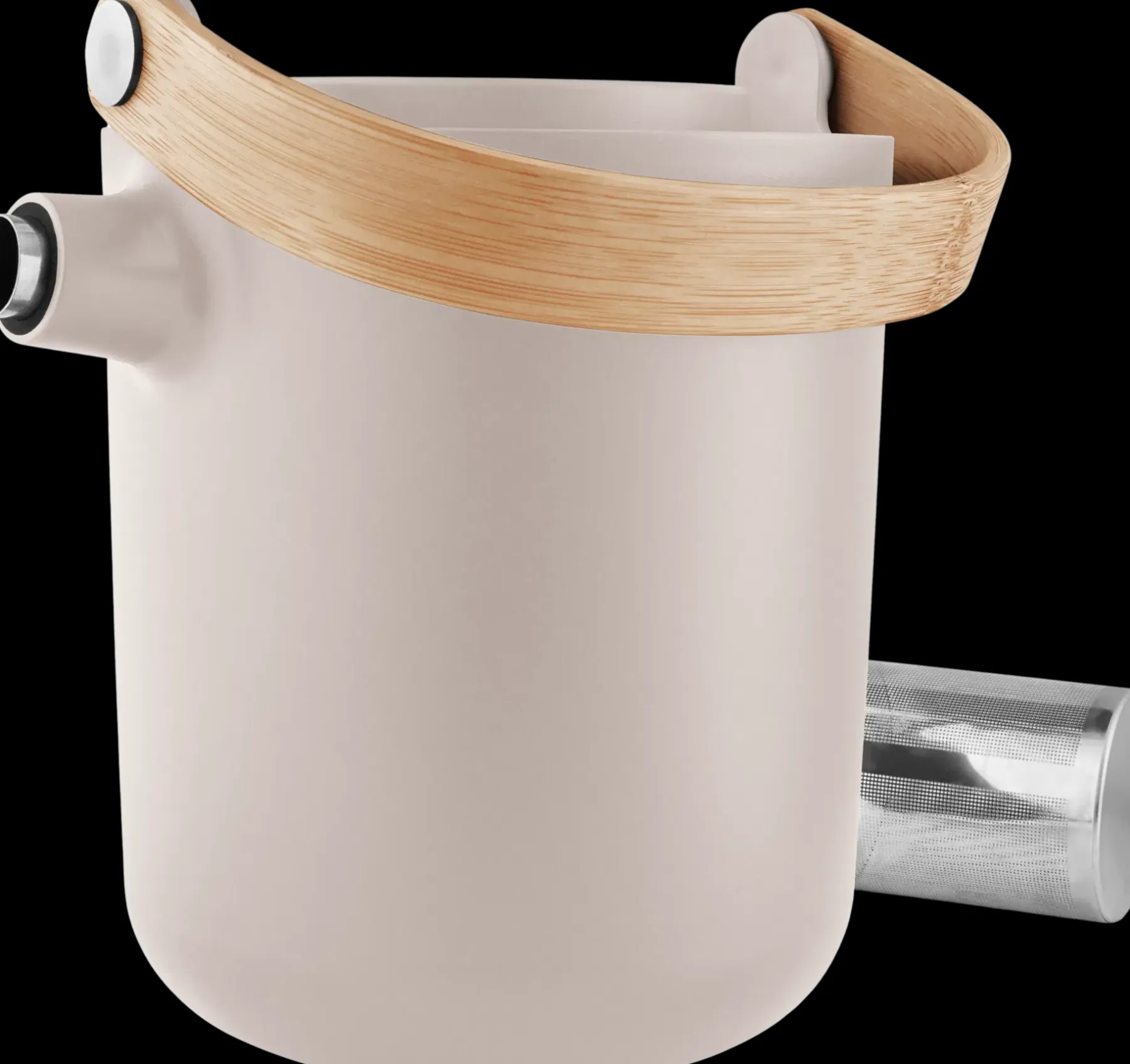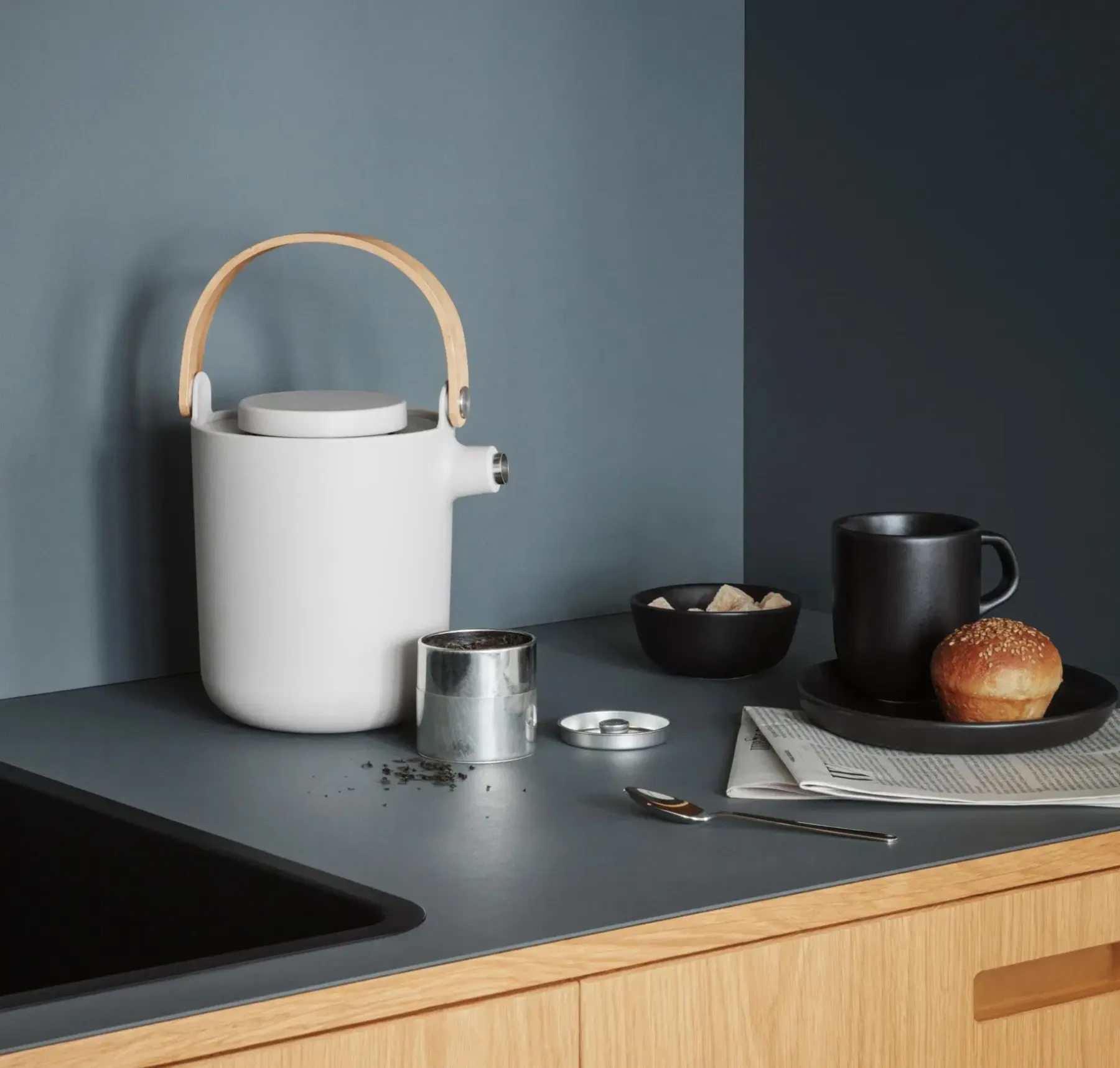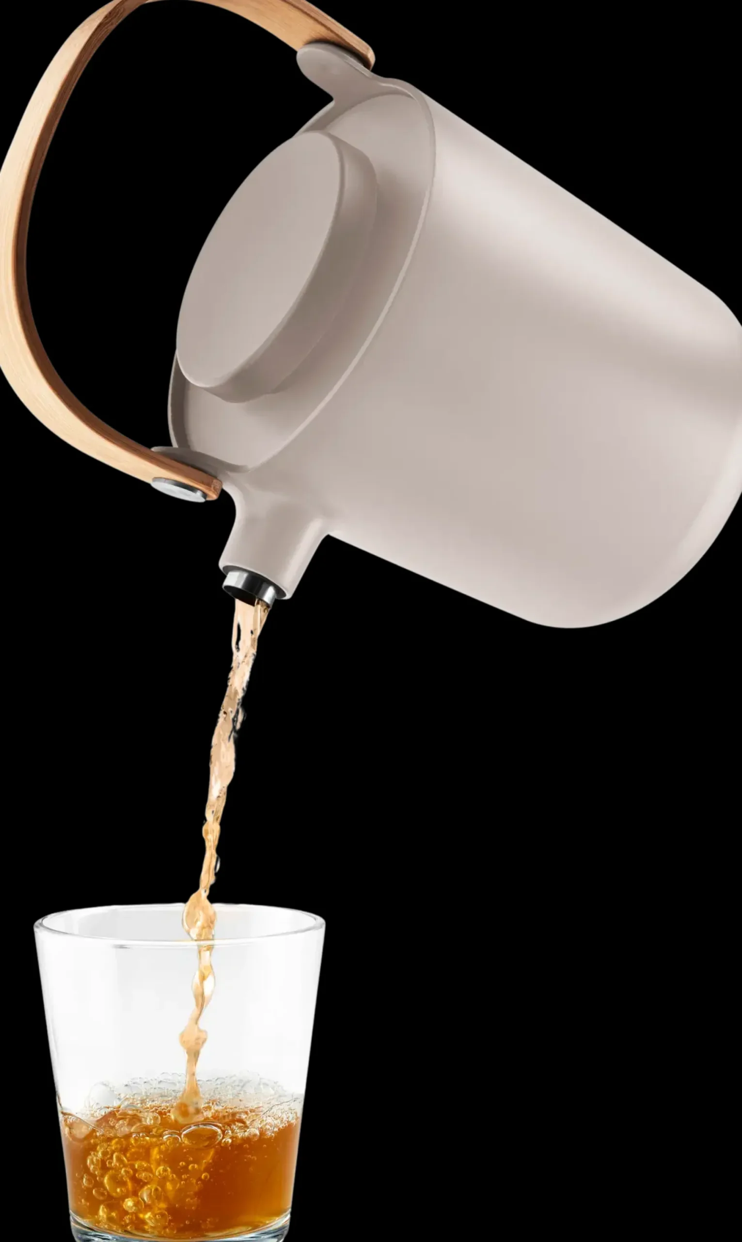 Eva Solon modernissa Nordic Kitchen kannussa on integroitu teenhaudutin, joka mahdollistaa teen valmistamisen suoraan termoskannuun. Muotoilu on saanut inspiraationsa teepannusta, joka erottaa sen helposti kahvitermoksesta. Eva Sololle tyypilliseen tapaan upea ulkonäkö yhdistyy jälleen huippuluokan funktionaalisuuteen; kaadin hauduttaa teen kätevästi suoraan kaatimeen ja teräksinen sisäosa pitää juoman kuumana pitkään. Teenhaudutin on helppo nostaa kannusta pois teen valmistuttua. Termoskaatimessa on 100% tipaton kaatonokka, sekä kaatonokassa filtteri. Bambukahvan avulla kaadinta on helppo käyttää, kahvan voi taittaa alas tai jättää pystyyn.