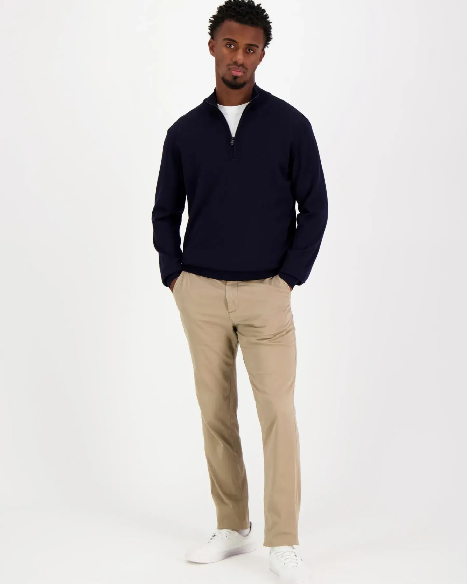 Italiassa Extra Fine Merinovillasta valmistettu neule, jossa vetoketjullinen pystykaulus. Mulesing free villaa.