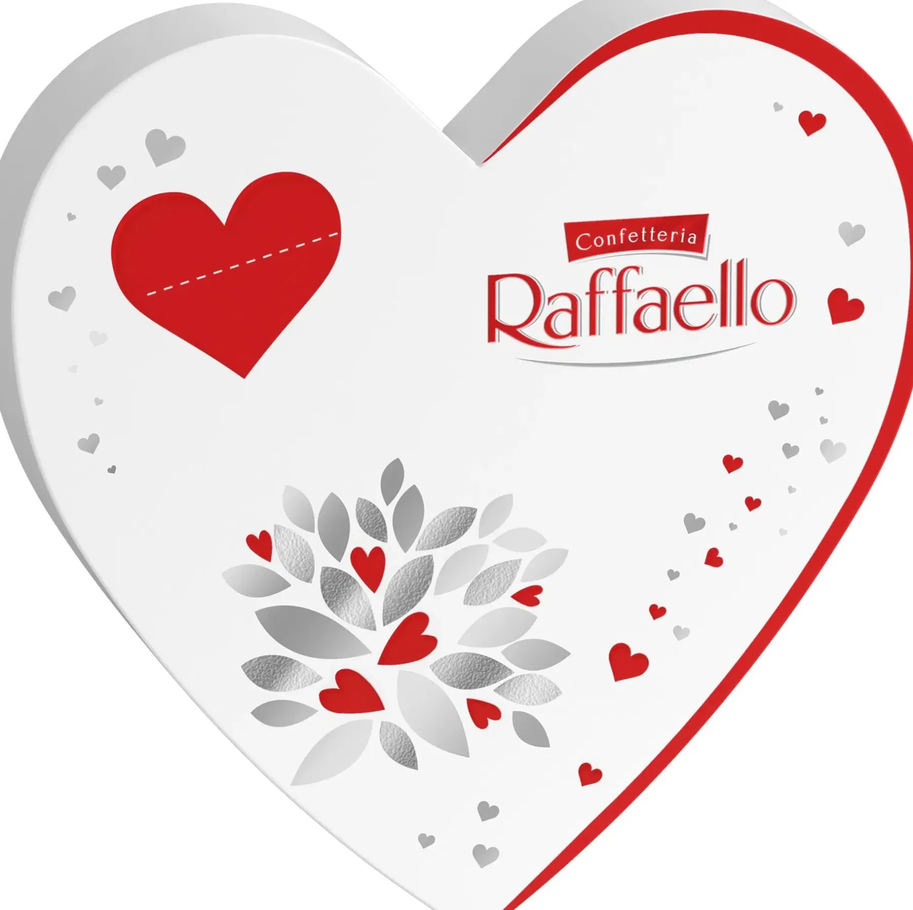 Raffaello-sydämenmuotoinen rasia sisältäen 14 Raffaello-konvehtia. Täydellinen lahja hänelle, josta välität. Maukkaiden kookoshiutaleiden peittämän rapean vohvelin sisällä ytimenä herkullinen, kokonainen manteli, jota ympäröi samettisen pehmeä kookoskreemi.