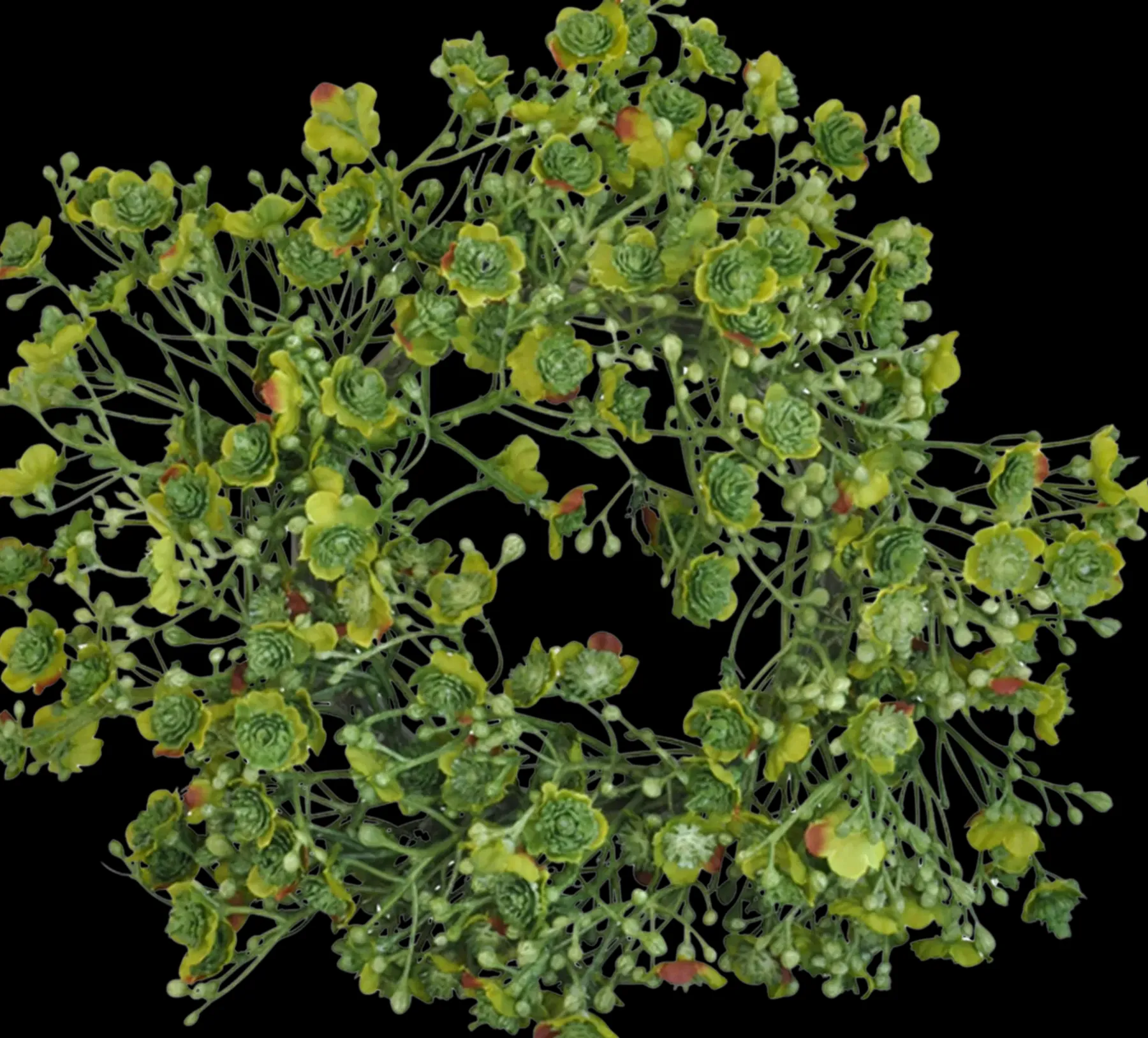 Pieni tummanvihreä kranssi harsokukasta. Sopii hyvin osaksi kynttiläasetelmia. Huomioi kuitenkin, ettei se saa olla kosketuksessa kynttilöiden kanssa.