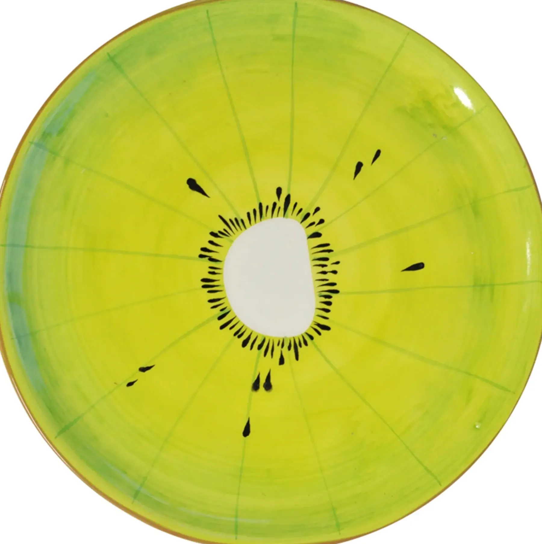 Matala keraaminen lautanen kiivin väreissä ja kuviossa.