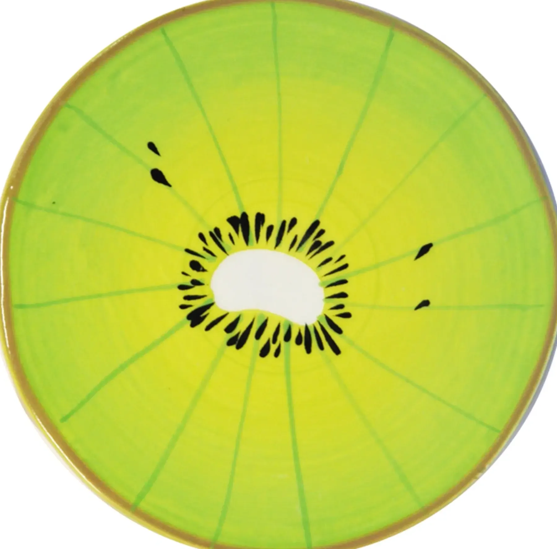 Keraaminen lasinalunen kiivin väreissä ja kuviossa. Helppo puhdistaa kostealla liinalla.