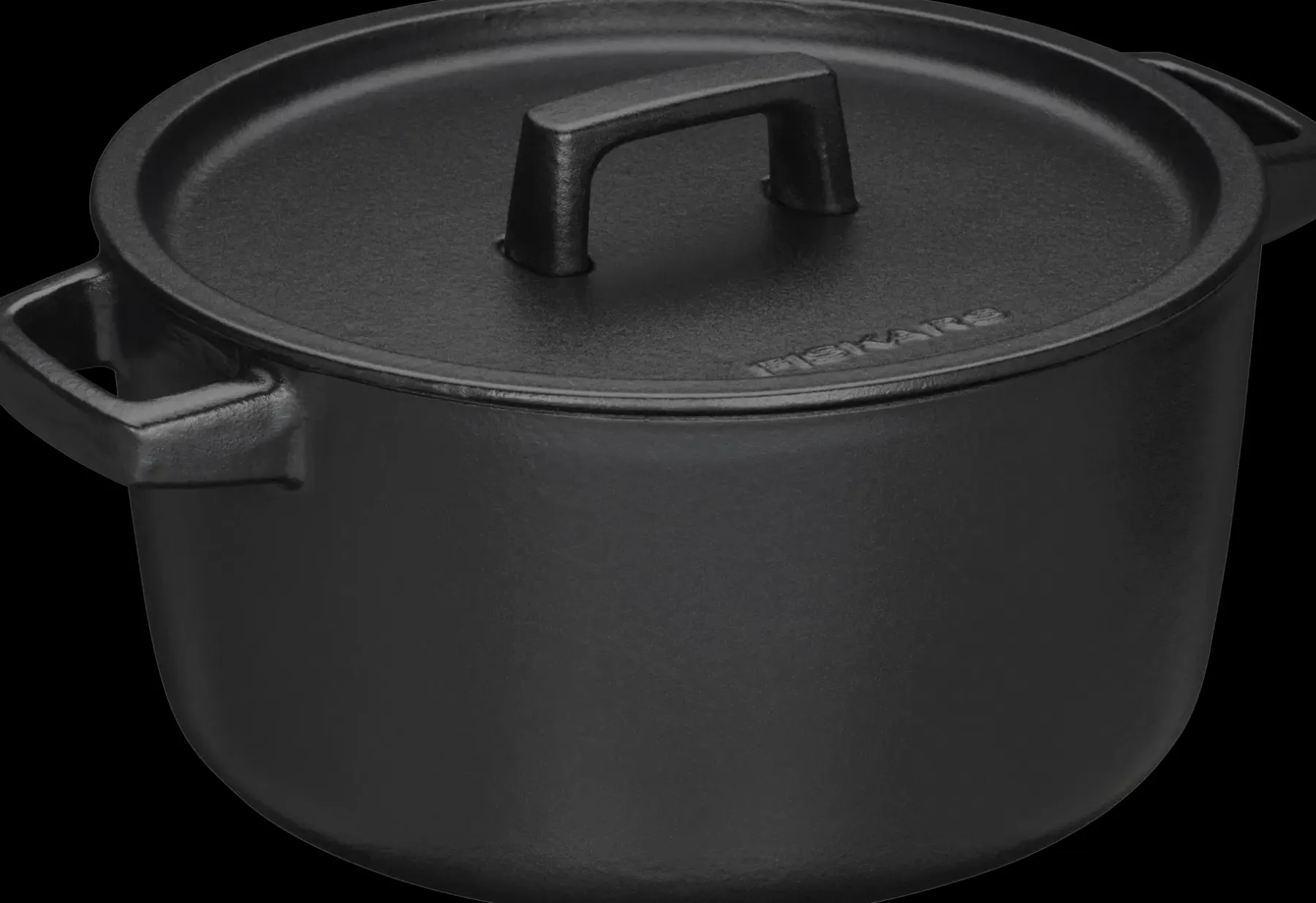 Perinneresepteillä syntyy autenttisia hetkiä, kun käytössä on Fiskars Folken -kattila. Pelkistettyjen ja ajattomien Folken-keitto- ja paistoastioiden valmistukseen on käytetty vain olennaisimpia, vähäeleisiä materiaaleja, jotka takaavat aikaa kestävän ruoanvalmistuskokemuksen. Kestävästä ja kierrätetystä valuraudasta valmistettu, emalipinnoitettu Fiskars Folken -kattila 4 L sopii erityisesti keittojen tai muhennosten haudutukseen ja hitaaseen valmistukseen matalalla lämmöllä. Valurauta lämpenee erittäin hyvin kaikenlaisilla liesillä, mukaan lukien induktioliedellä. Kattilassa on valettu, lämpöä säilövä kansi, minkä ansiosta kattila sopii hitaasen ruoanlaittoon matalalla lämmöllä, ja se jakaa lämpöä tasaisesti. Folken-keitto- ja paistoastiat tekevät ruoanlaitosta miellyttävämpää, sillä ne ovat 30 % perinteisiä valurauta-astioita kevyempiä. Pannu kestää maksimissaan 270 asteen paistolämpötilan ja uunin. Kattila ei vaadi rasvapolttoa, ja se tulee pestä käsin.