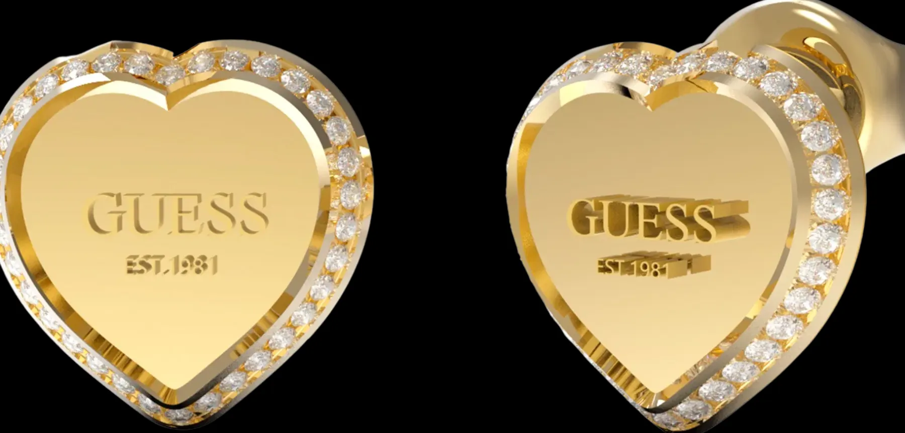 Kauniit GUESS sydänkorvakorut ovat terästä, joissa on kullanvärinen pinnoite ja ne sopivat jokaiseen päivään ja hetkeen. Sydämessä on Guess logo ja sydäntä ympäröivät kristallikivet. Korvakoruissa on tappikiinnitys
