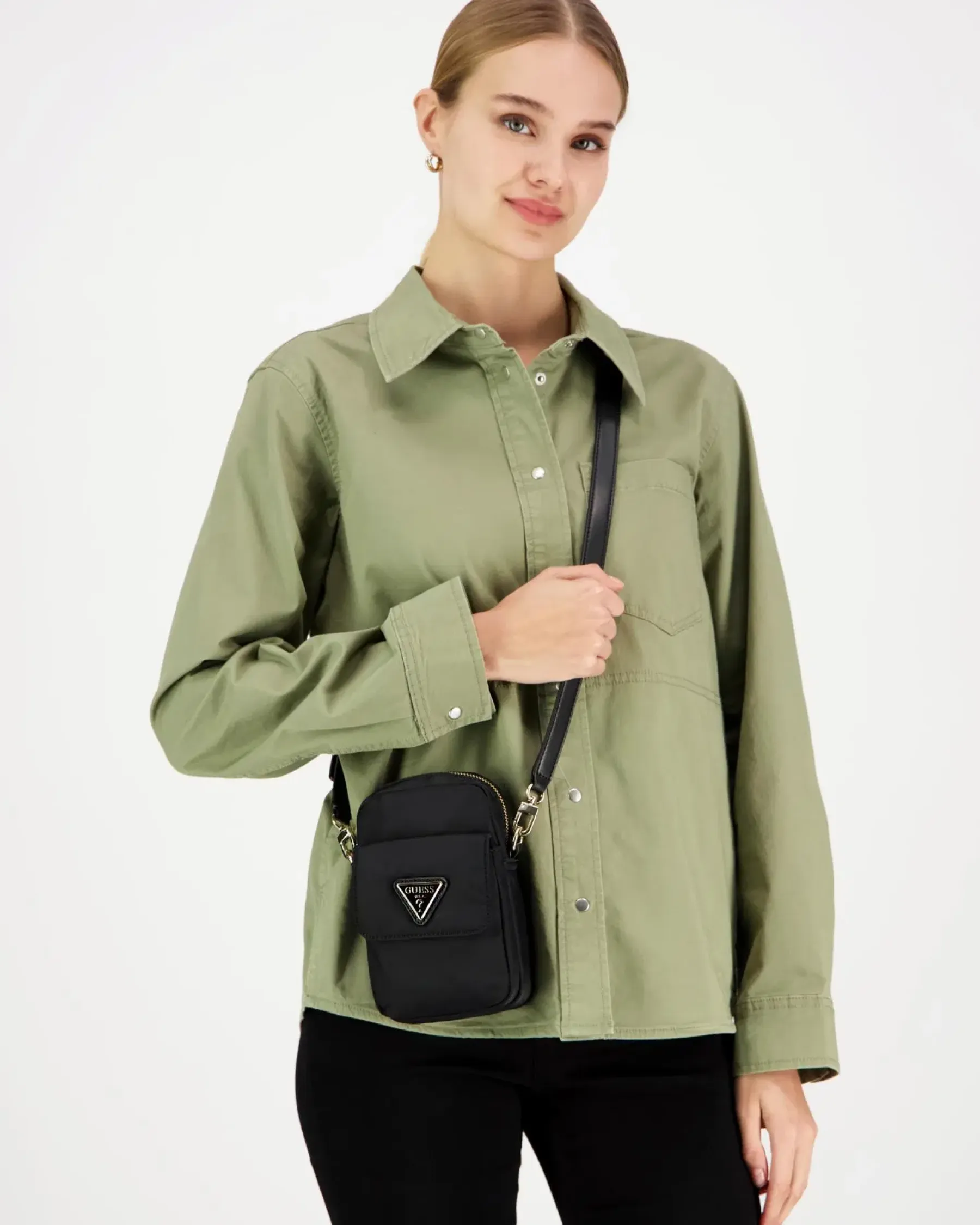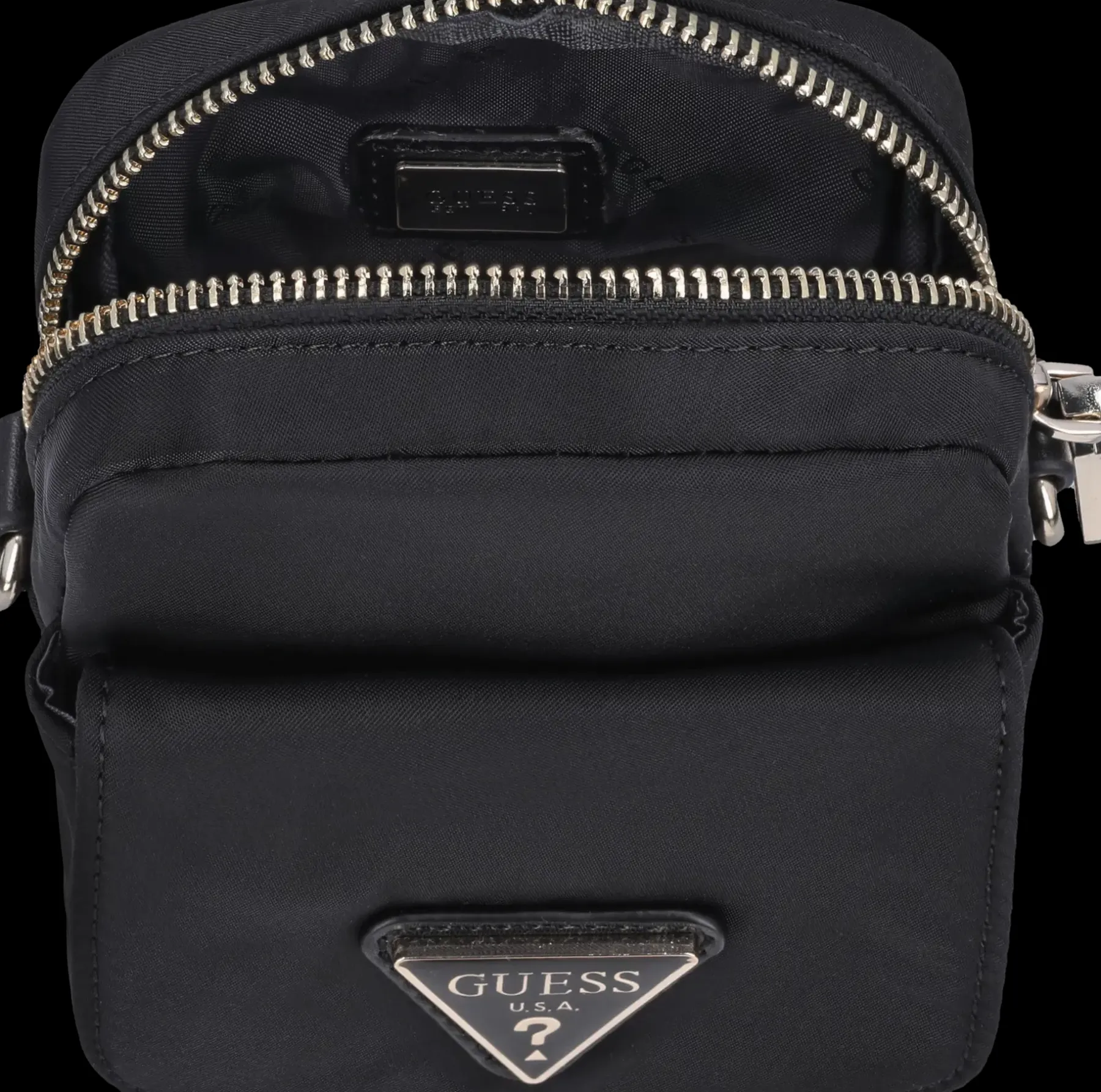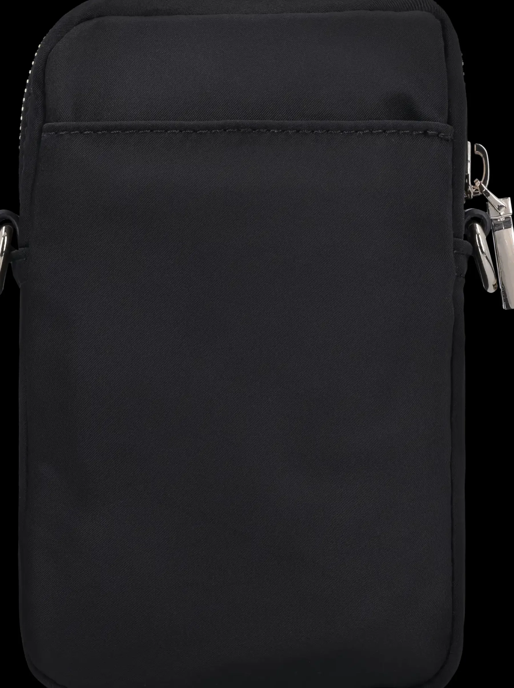 Minilaukku vaikka puhelimelle ja passille. Irroitettava ja säädettävä kantohihna. Edessä painonapilla aukeava tasku. Päältä tasku aukeaa vetoketjulla. Lisäksi takapuolella pieni avotasku.