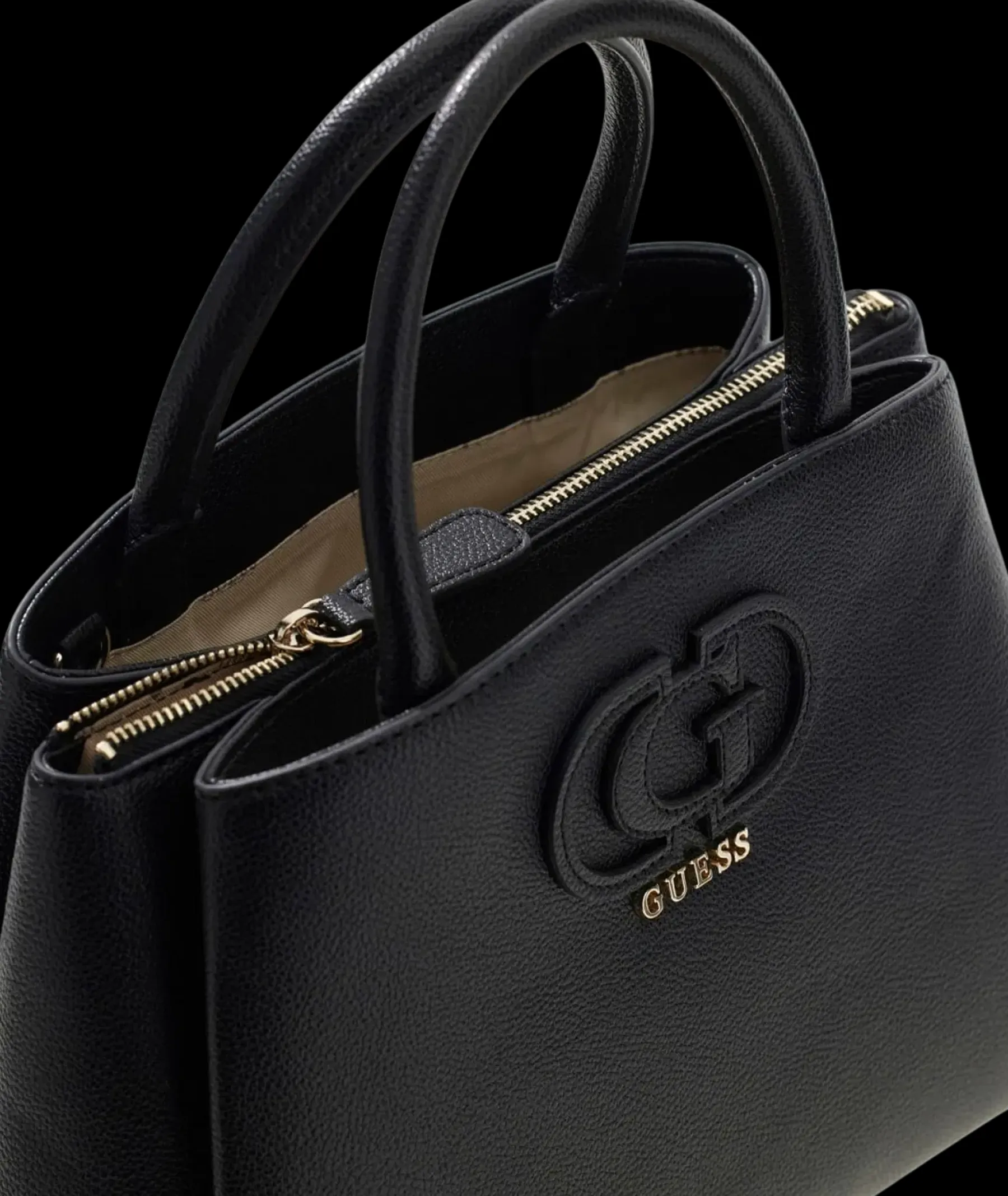 Keinonahkainen pikkulaukku. Kantokahvat ja irrotettava, säädettävä olkahihna. Sisällä 2 avolokeroa ja vetoketjullinen lokero.