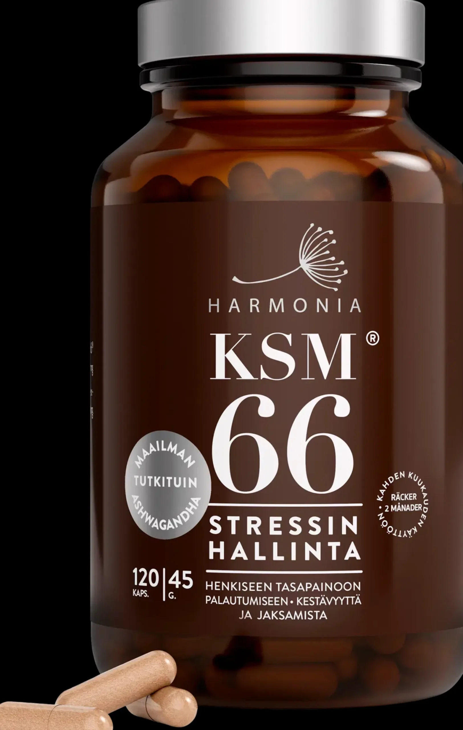 – Kliinisesti tutkittu KSM66 auttaa edistämään stressinsietokykyä, fyysistä ja henkistä vireyttä sekä emotionaalista tasapainoa ja unentuloa. Lisäksi KSM66 tukee miehen seksuaalista halukkuutta ja naisen hedelmällisyyttä sekä ylläpitää kestävyyttä ja lihasmassaa.