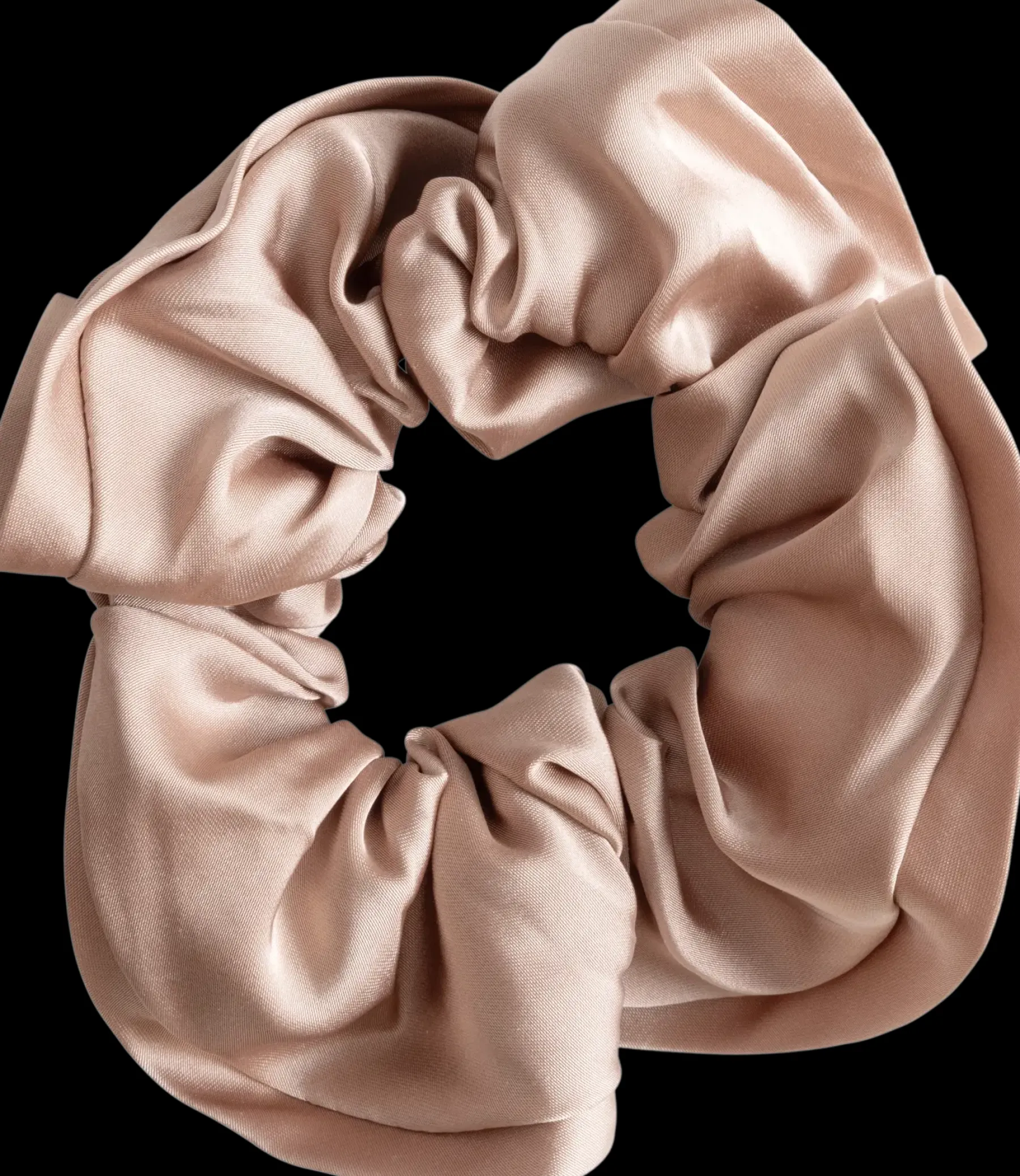 Muhkea tumman beigen värinen hiusdonitsi koristeompelureunalla. Hiusdonitsin halkaisija noin 12 cm.