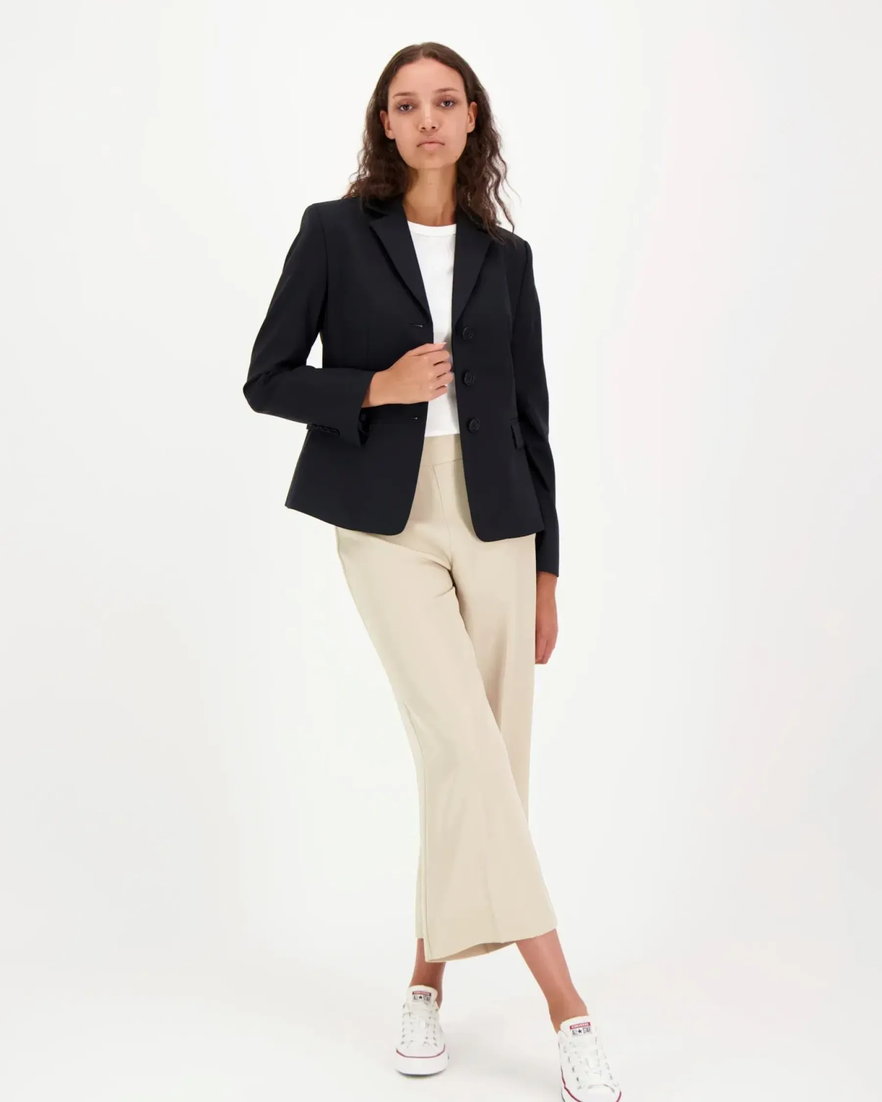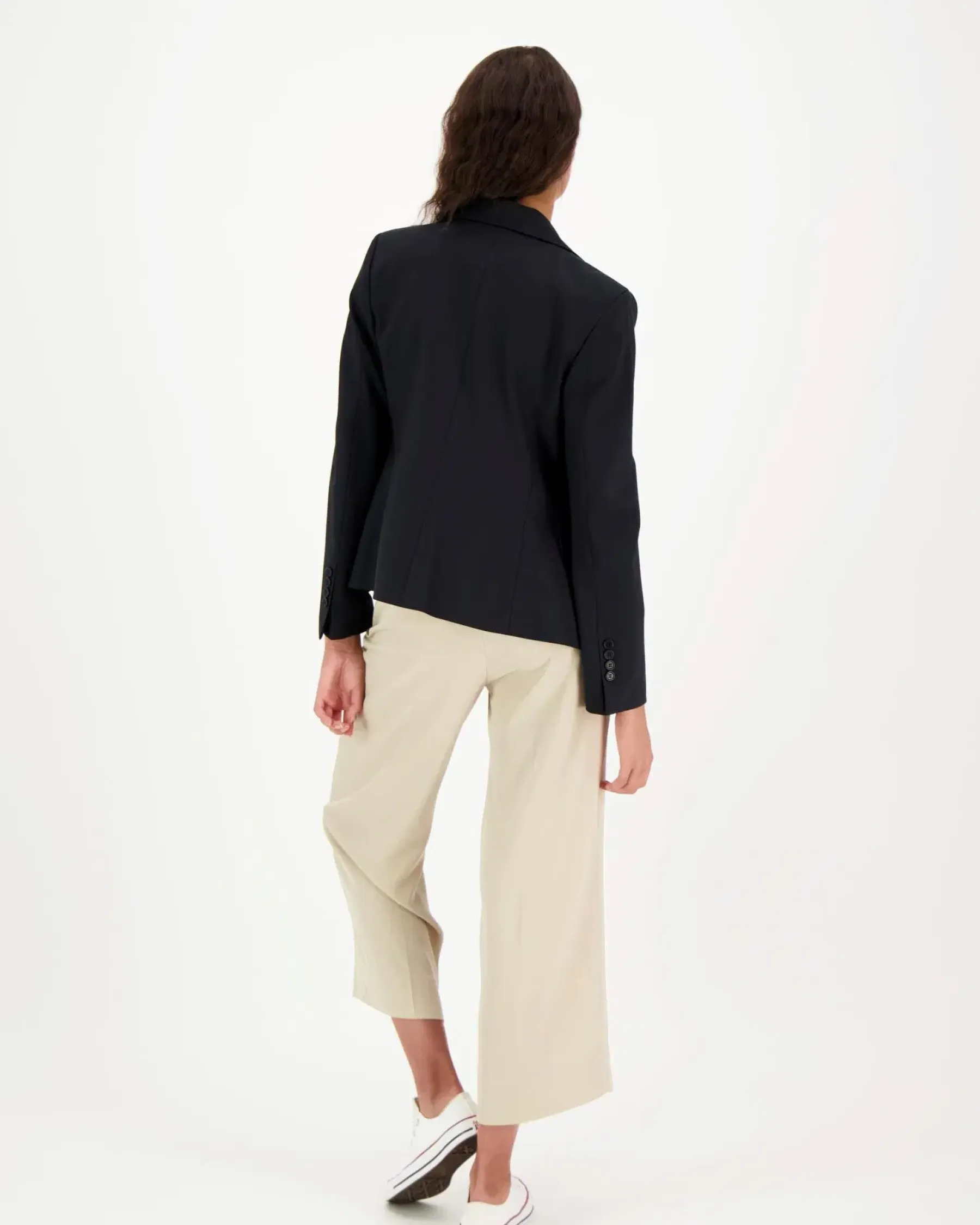 Jakku on muotoonommeltu, laadukkaasta villaseoksesta valmistettu, hyvin istuva ja leikkaukseltaan lyhyt. Yksirivinen, kolmen napin kiinnitys luo viimeistellyn ilmeen ja teremalliset etutaskut tuovat käytännöllisyyttä.