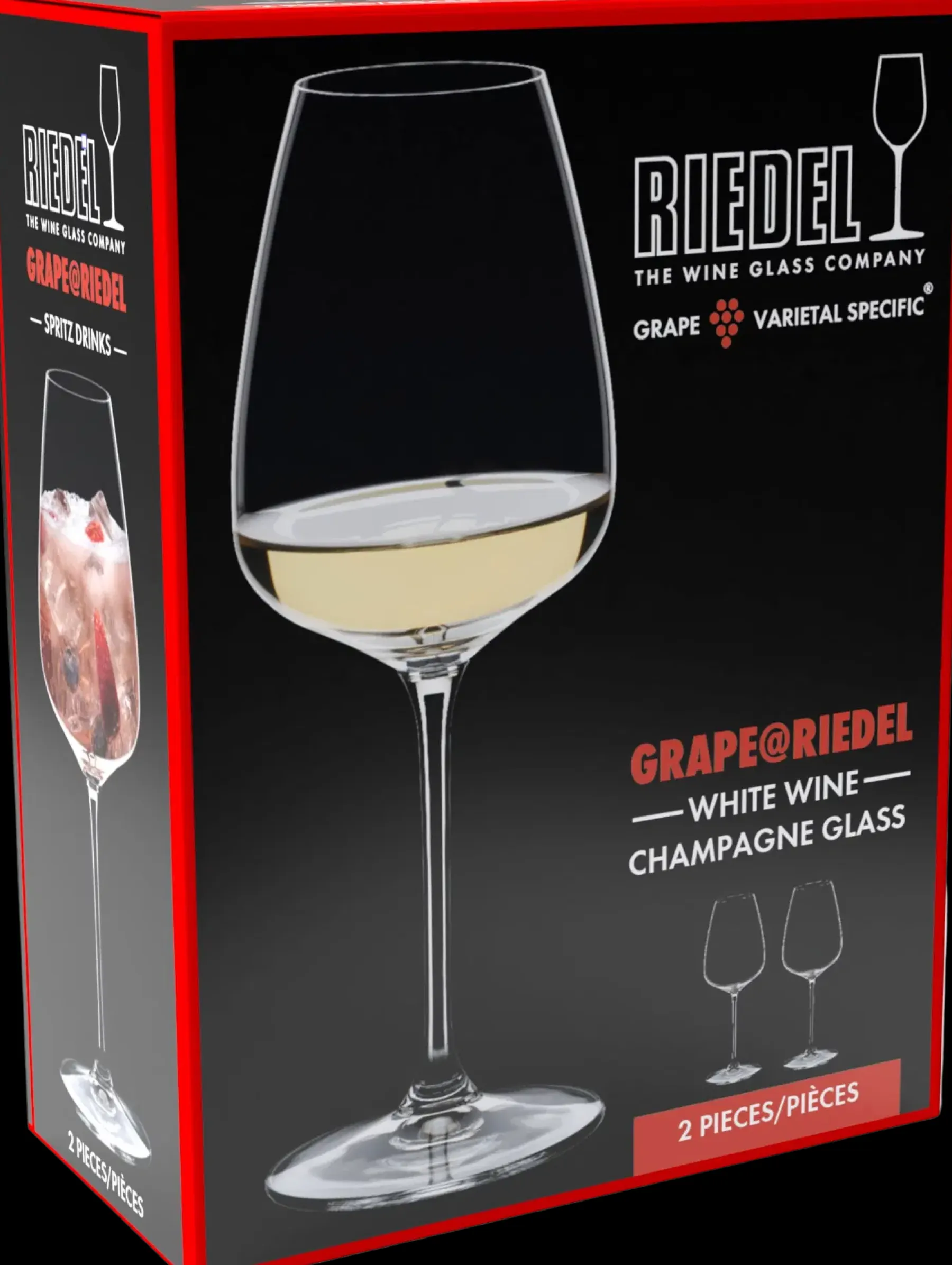 Grape@Riedel White Wine -valkoviinilasi on modernisti muotoiltu viinilasi, joka soveltuu raikkaiden valkoviinien ja kuohuviinien lisäksi hyvin myös spritz-cocktaileiden tarjoiluun. Lasin isokokoinen malja antaa aromeille tilaa, jolloin raikkaiden juomien maut tulevat hyvin esiin. Leveän pohjansa ansiosta lasi on on vakaa eikä kaadu helposti. Tämä monille raikkaille juomille soveltuva lasi tuo kattaukseen myös ripauksen modernia eleganssia. Lasin korkeus on 23,6 cm ja sen vetoisuus on 550 ml. Pakkaus sisältää 2 kpl laseja ja se kestää hyvin postituksen. Grape@Riedel -lasisarja on suunniteltu vuonna 2024 ja sarjan lasit soveltuvat sekä viinien että cocktailien nauttimiseen.