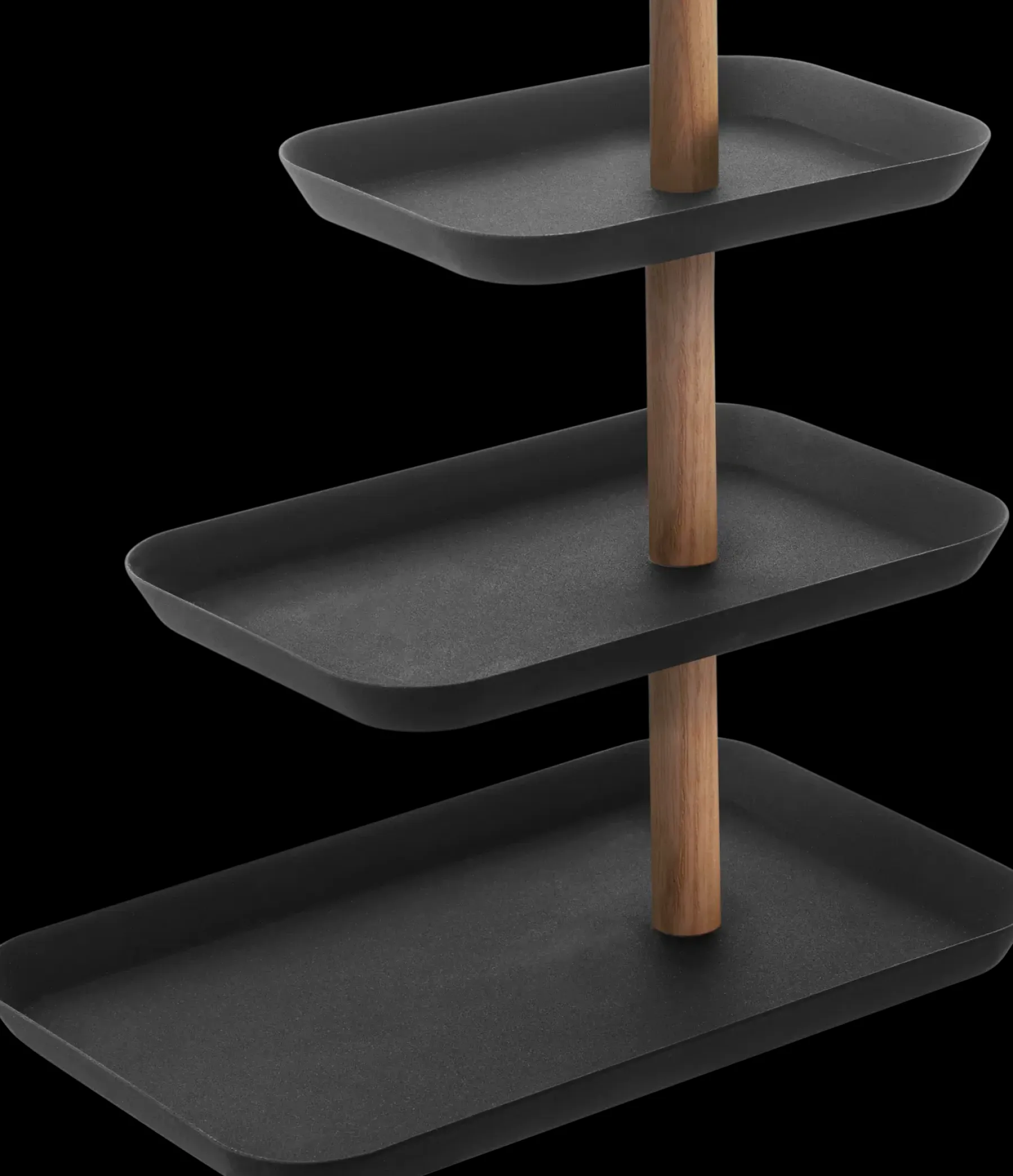 Tyylikäs ja monikäyttöinen kolmikerroksinen kerrosvati on todellinen katseenvangitsija. Se tarjoaa runsaasti tilaa koruille, kosmetiikalle ja muille pienille esineille, pitäen ne kauniisti järjestyksessä. Kerrosvati toimii upeasti myös tarjoiluastiana: sen 360° kääntyvät tasot tekevät siitä käytännöllisen ja monipuolisen ratkaisun niin arkeen kuin juhlaan. Tämä elegantti vati tuo arkeen ripauksen ylellisyyttä ja on täydellinen esimerkiksi iltapäiväteelle. Koottava. Materiaali: jauhemaalattu teräs, puu. Suunniteltu Japanissa.
