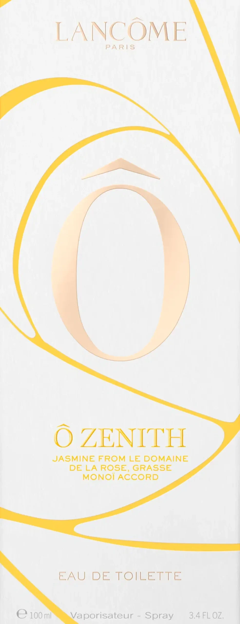 Lancômen Les Ô yhdistää tuoksun todellisiin tunteisiin. Jokainen tuoksu on luotu aurinkoisella Le Domaine de la Rosen puutarhassa ja valmistettu omista ainesosistamme – rakkaudella Välimeren auringon alla, Grassen sydämessä. Parfyymimestarien suunnittelema Les Ô -valikoima on enemmän kuin pelkkiä tuoksuja: ne ilmaisevat tunteita Ô ZENITH on onnen purkaus! Mielialaa kohottavassa tuoksussa jasmiini Le Domaine de la Rosesta Grassesta eksoottiseen monoi-ainesosaan. Kuvittele aurinko lakipisteessään, täyttäen sinut ilolla. IFF:n Science of Wellness -ohjelman ansiosta – joka hyödyntää edistyksellistä tutkimusta yhdistääkseen tuoksuja positiivisiin emotionaalisiin reaktioihin – koet puhdasta iloa, joka antaa potkua päivääsi. Ô ZENITHin avulla saavutat oman zen-tilasi milloin tahansa, missä tahansa. – KUKKAINEN – VALKOISET KUKAT – HEDELMÄINEN Les Ô -pullon puhtaan linjakas muotoilu korostaa kunkin tuoksun eloisia värejä. Ikonisen Lancôme Rose Agora -kuvion ansiosta, joka on kaiverrettu lasiin, pullo on yhtä lailla kaunis esine kuin tuhansien positiivisten tunteiden pisaroiden säilytyspaikka!