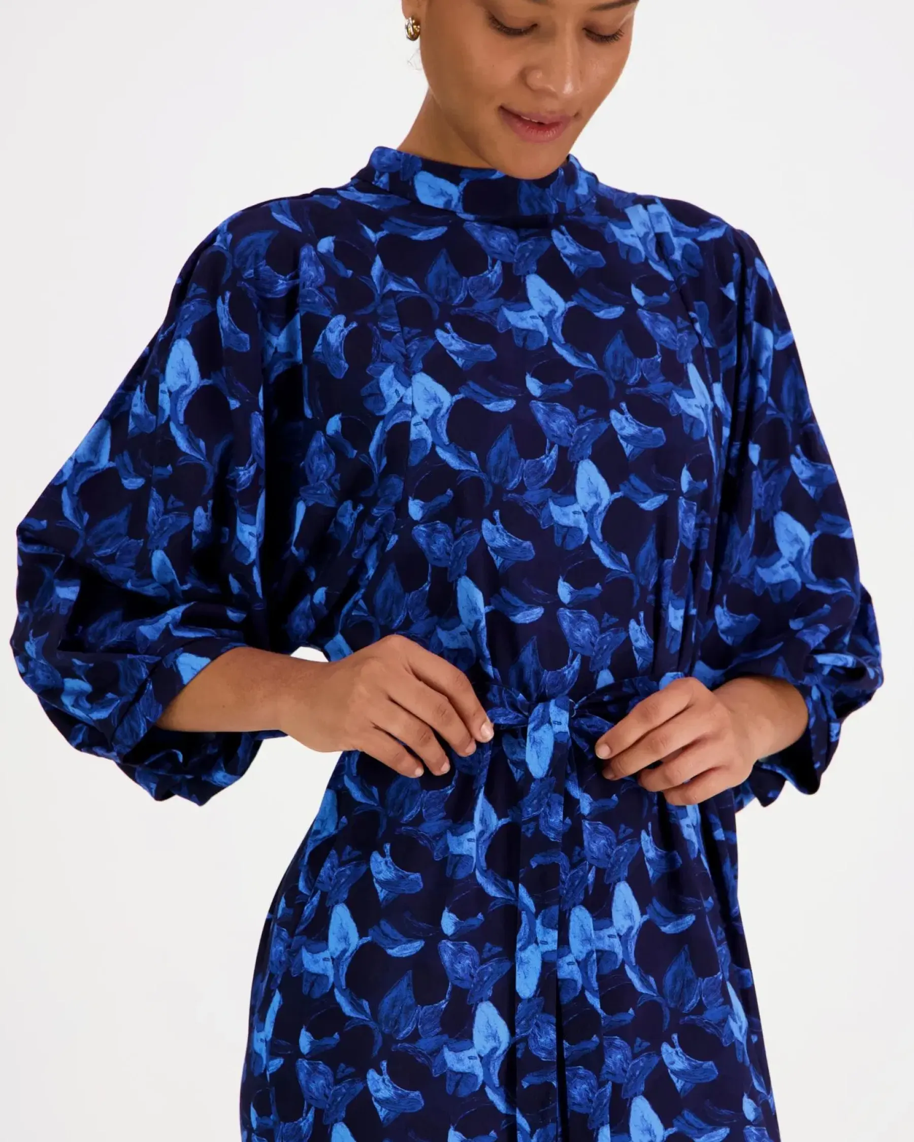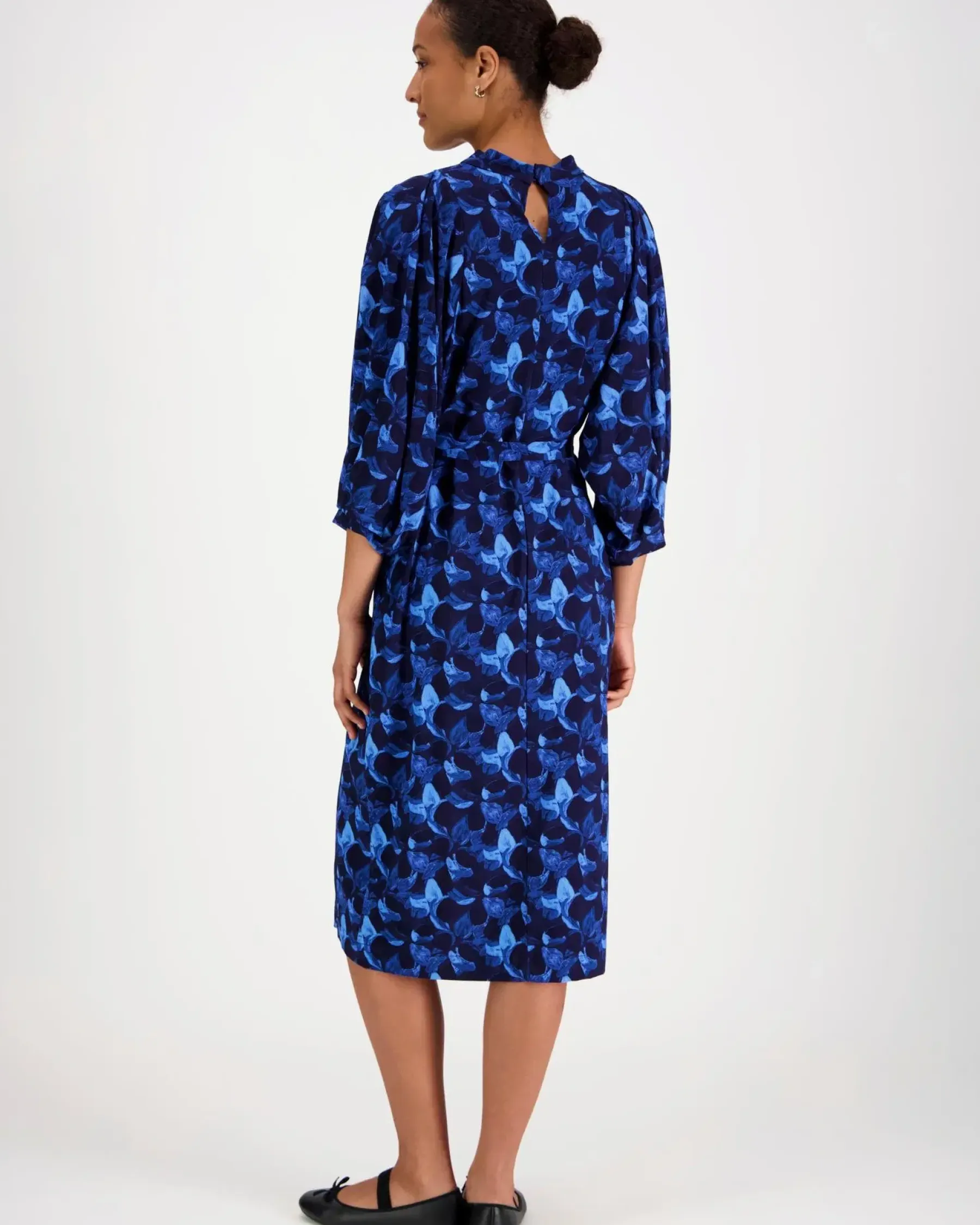 Kotimaisen Voglian upeassa Liberty-mekossa on viehättävät puhvihihat, irroitettava vyö, taskut ja napit niskassa. Tämä mekko on ommeltu hieman joustavasta viskoosikankaasta, johon on painettu kaunis kasvikuosimme nimeltään Yölilja. Liberty-mekko sopii monenlaisiin juhlatilaisuuksiin sekä tärkeisiin hetkiin, se on täydellinen yhdistelmä tyyliä ja käytännöllisyyttä.