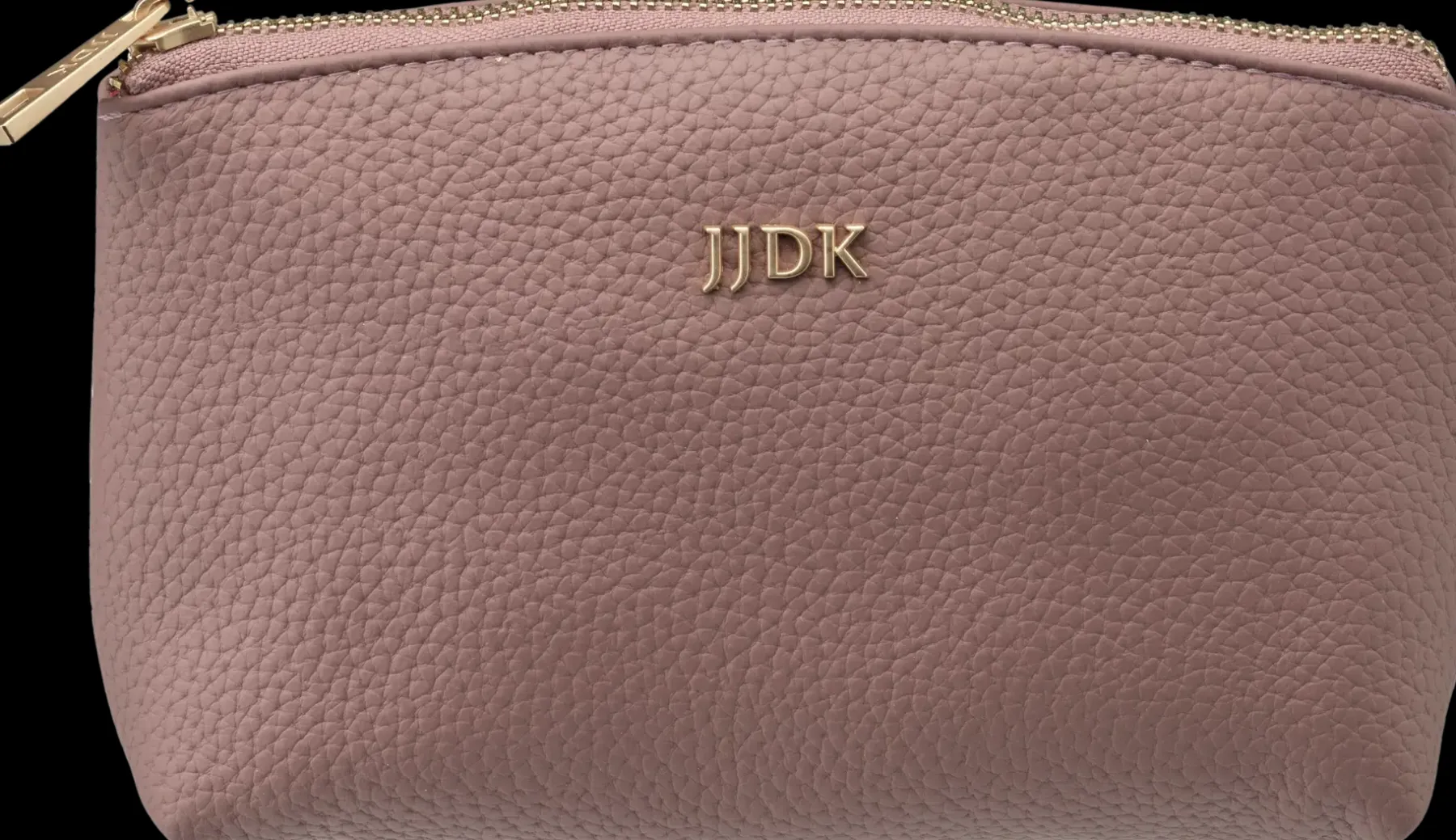 Luumunvärinen kosmetiikkapussi vetoketjulla. Materiaali: tekonahka ja polyesteri. Koko: 18x12x5cm.