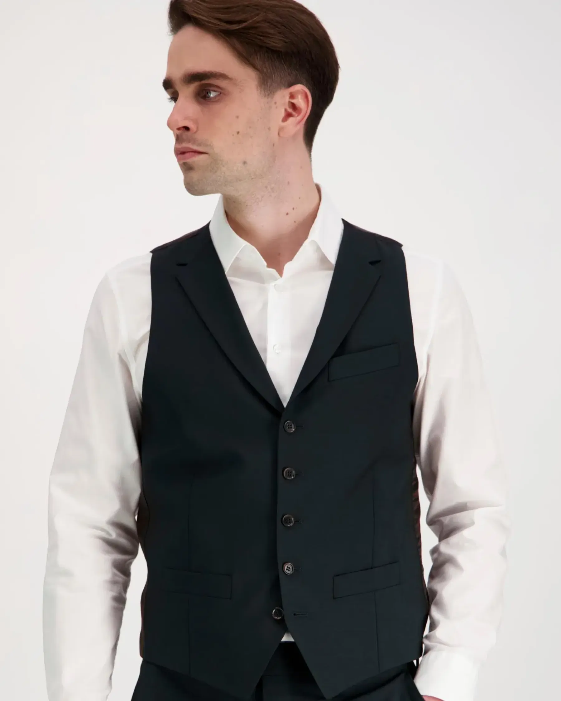 Tummanvihreä Lucca pukuliivi on yhdistettävissä samasta kankaasta tehtyyn pukuun, Jonas ja Helsinki 7575. Italialaisen Vitale Barberis Canonicon villa-mohairkangas on ensiluokkaisen laadukas ja helppohoitoinen. Villan luontaisiin ominaisuuksiin kuuluu hyvä lämmönsäätelykyky ja hengittävyys, sekä miellyttävä tuntu ihoa vasten.