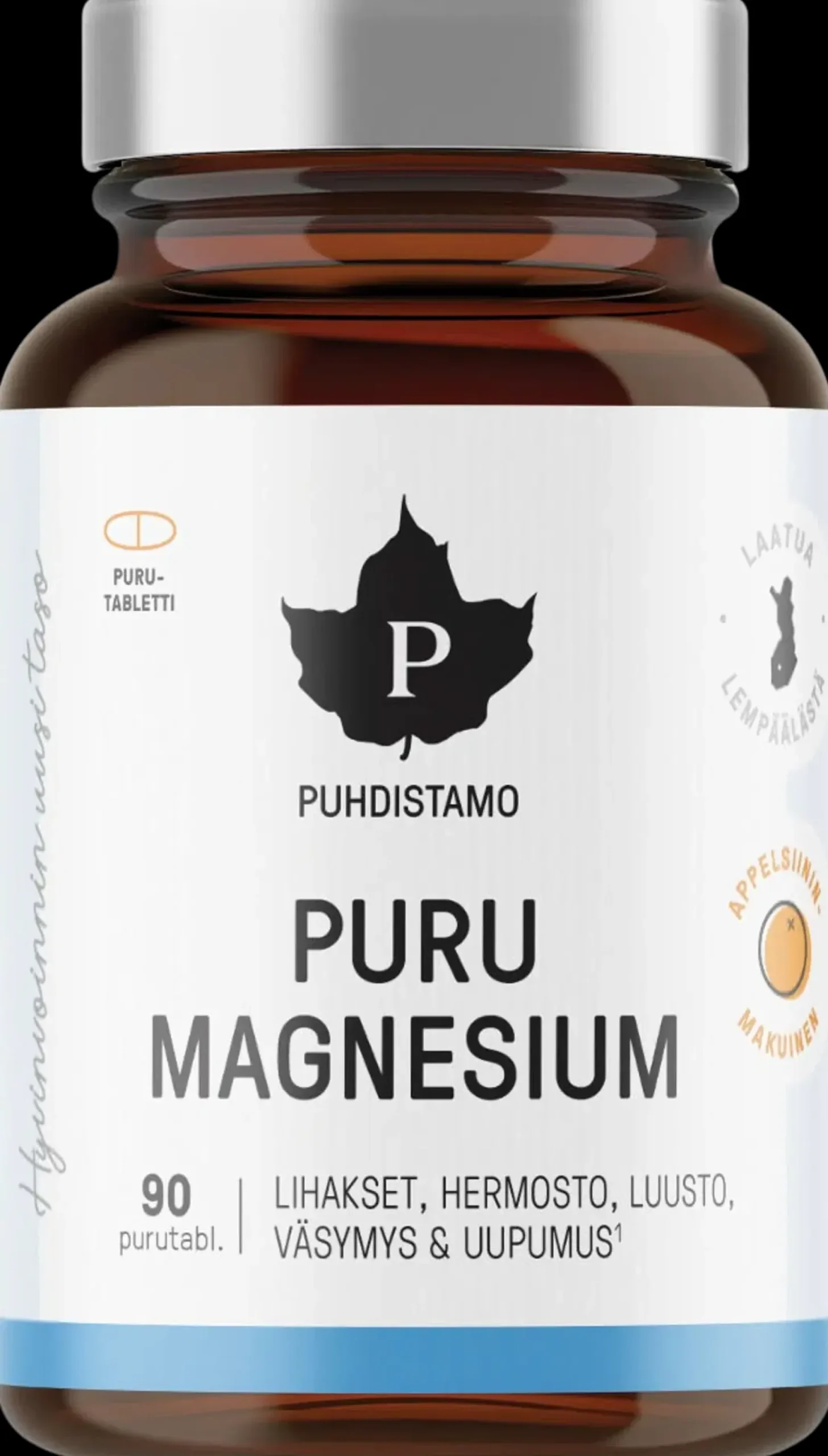 Puhdistamon Puru Magnesium on aidosti hyvänmakuinen pureskeltava magnesium.