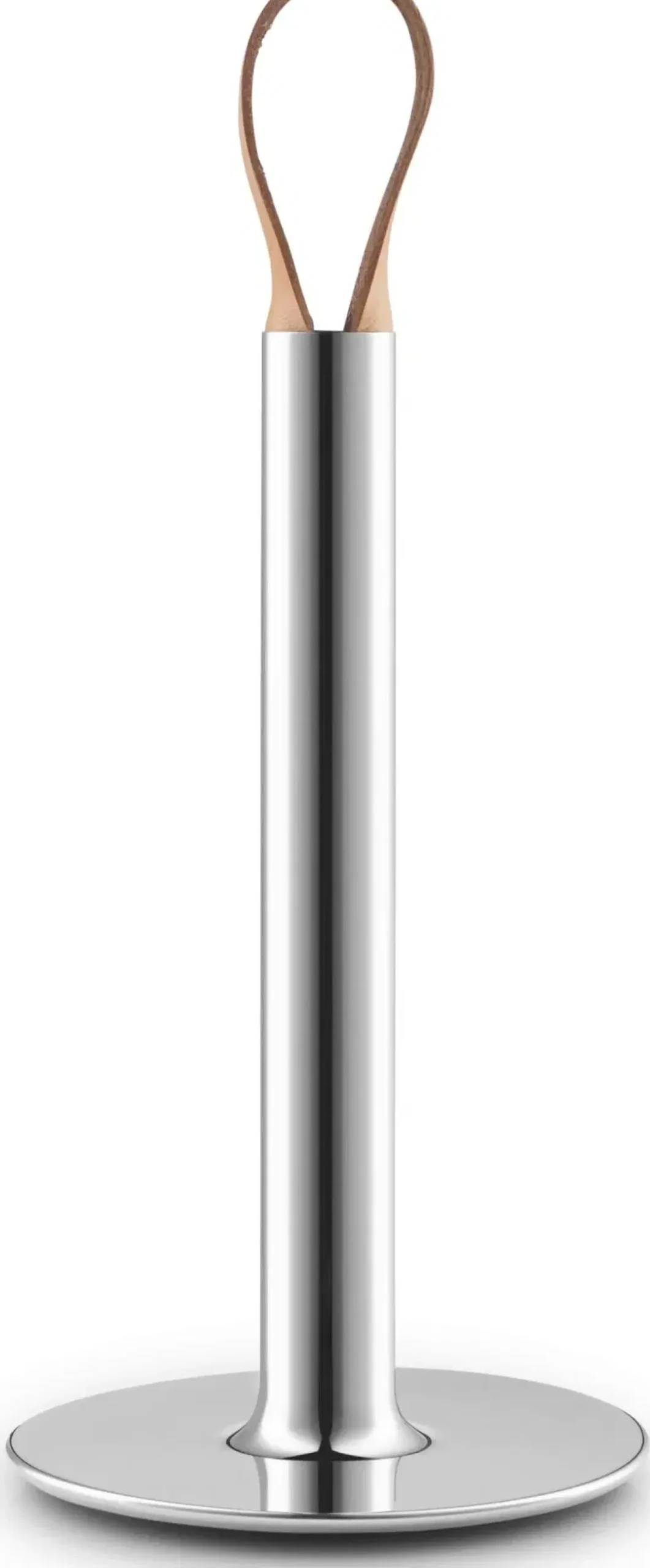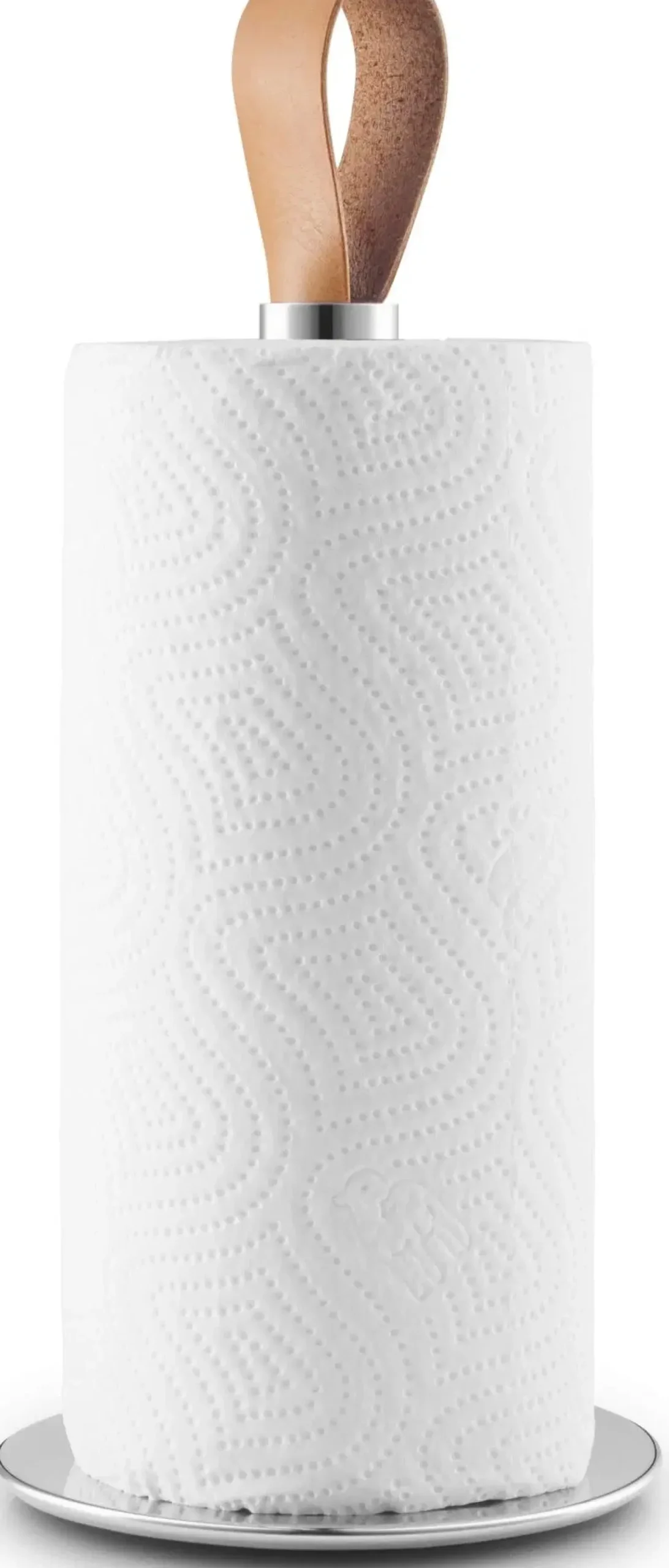 Tyylikäs talouspaperiteline. Materiaali: rosteri ja nahka.