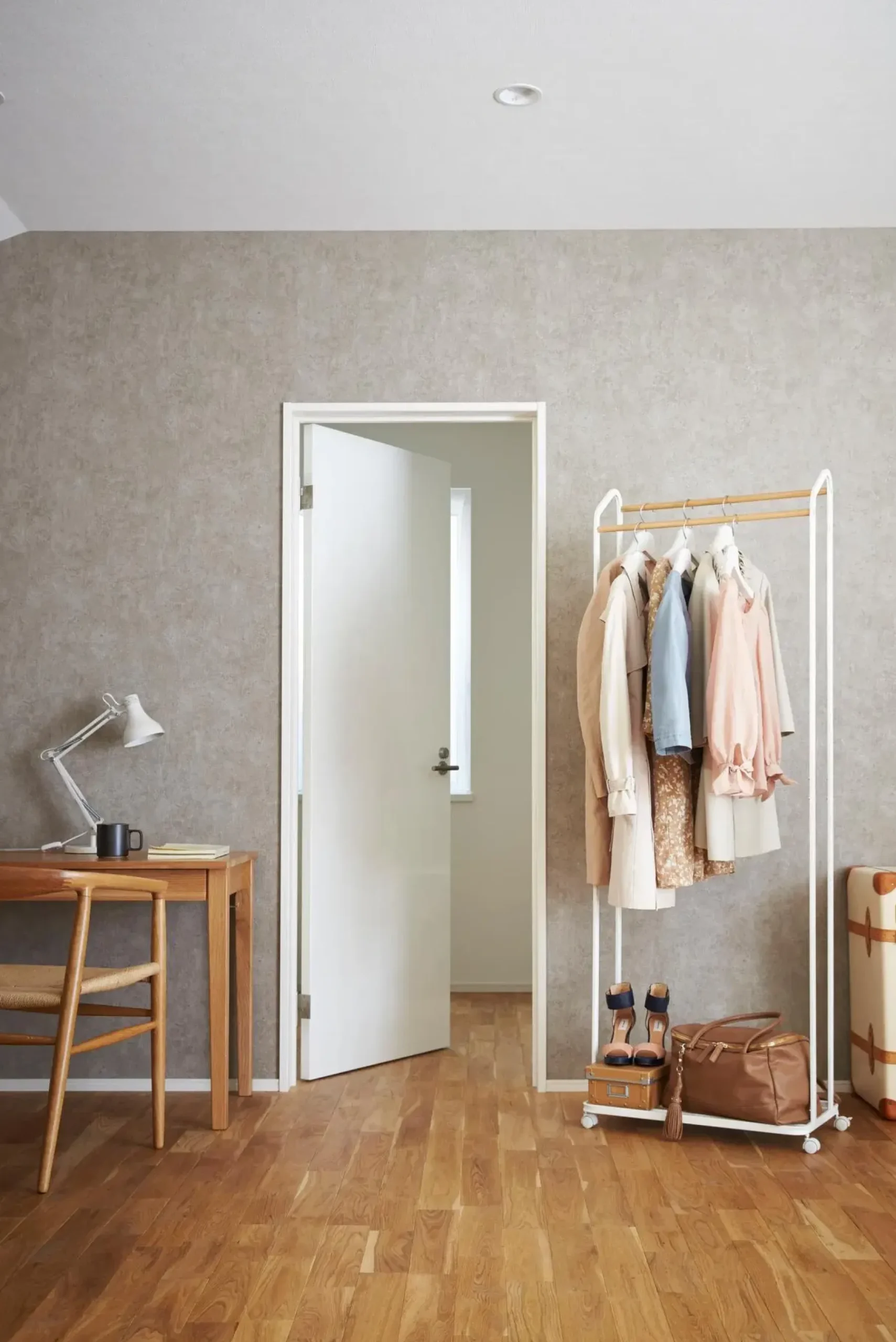 Yamazakin tilava ja käytännöllinen Tower-vaaterekki on varustettu pyörillä ja siinä on kaksi kaunista puutankoa vaatteiden ripustamista varten. Vaaterekki vie syvyyssuunnassa tilaa vain 35 cm, joten se sopii hyvin myös esimerkiksi kapeaan eteiseen. Alaosassa on tilaa laukuille tai kengille. Kumpikin tanko kestää 6 kg:n ja alaosan taso 5 kg:n painon.