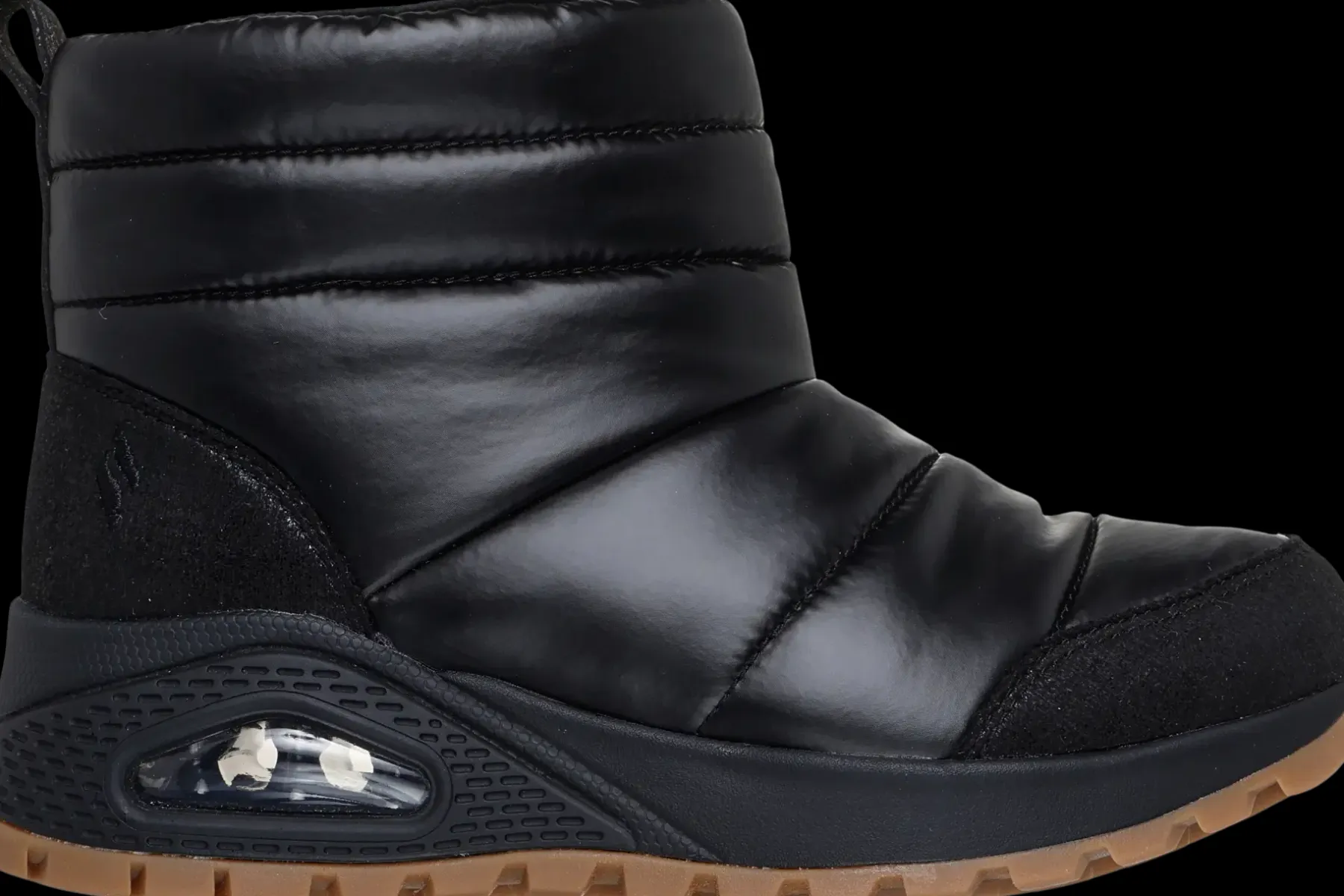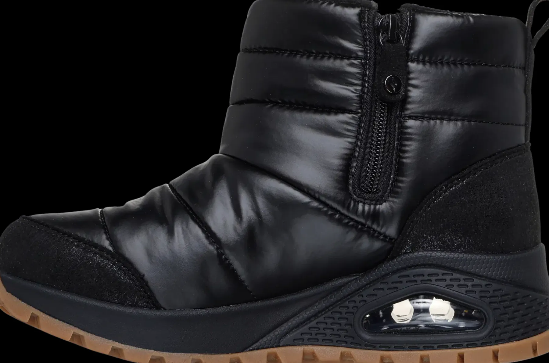 Suosittu UNO-kenkä talvisena versiona. Tällä talvijalkineella ulkoilu sujuu tyylikkäästi ja lämpimästi. Upeasti kiiltopintainen kenkä on näyttävä ja tyylikäs valinta, kengästä löytyvät Uno-kengälle tutut näkyvä Skech-Air – ilmatyyny ja Skechers Air-Cooled Memory Foam -sisäpohjallinen.
