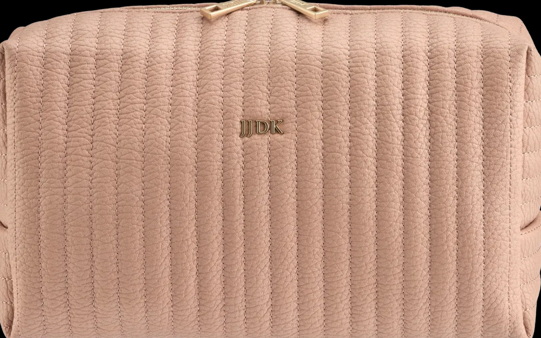 Tilaava kosmetiikkalaukku, jossa on runsaasti tilaa kosmetiikka- ja hygieniatuotteille. Ajattomassa mallissa yhdistyvät käytännöllisyys ja tyyli – kaikki tarvitsemasi on järjestyksessä ja helposti saatavilla. Upeasti tikatussa kosmetiikkalaukussa on kahteen suuntaan avautuva vetoketju sekä neljä joustavaa sisätaskua. Valmistettu pehmeästä keinonahasta, koko 30 × 17 × 8 cm. Väri: vanharoosa.