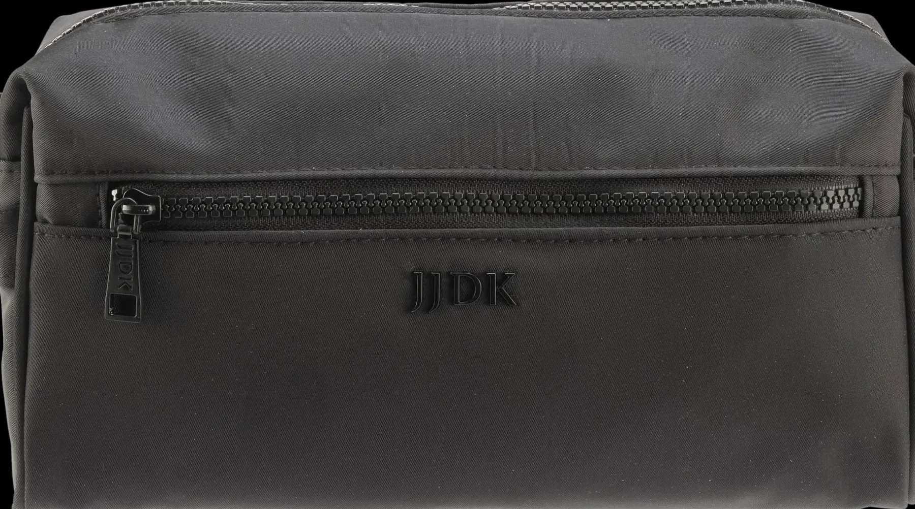 Musta miesten toilettilaukku neljällä sisätaskulla. Materiaali: Polyesteri. Koko: 25x14x9cm.