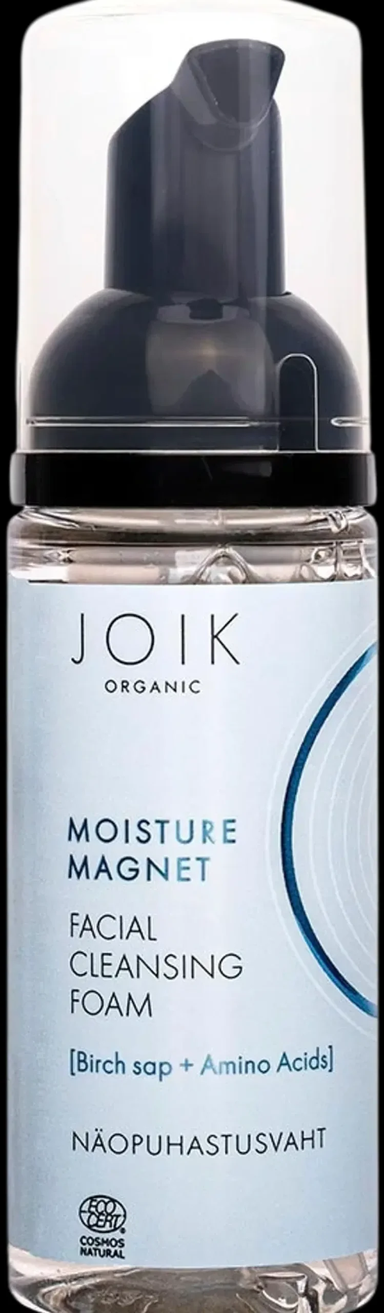 JOIK Moisture Magnet Facial Cleansing Foam puhdistusvaahdon sisältämät koivunmahlauute, hellävaraisesti puhdistavat komponentit, ihoa kosteuttavat kasvisokerit sekä vesiliukoinen oliiviiöljy puhdistavat ihon hellävaraisesti mutta tehokkaasti. Puhdistusvaahto poistaa meikin sekä epäpuhtaudet jättäen ihon pehmeäksi ja kosteutetuksi.
