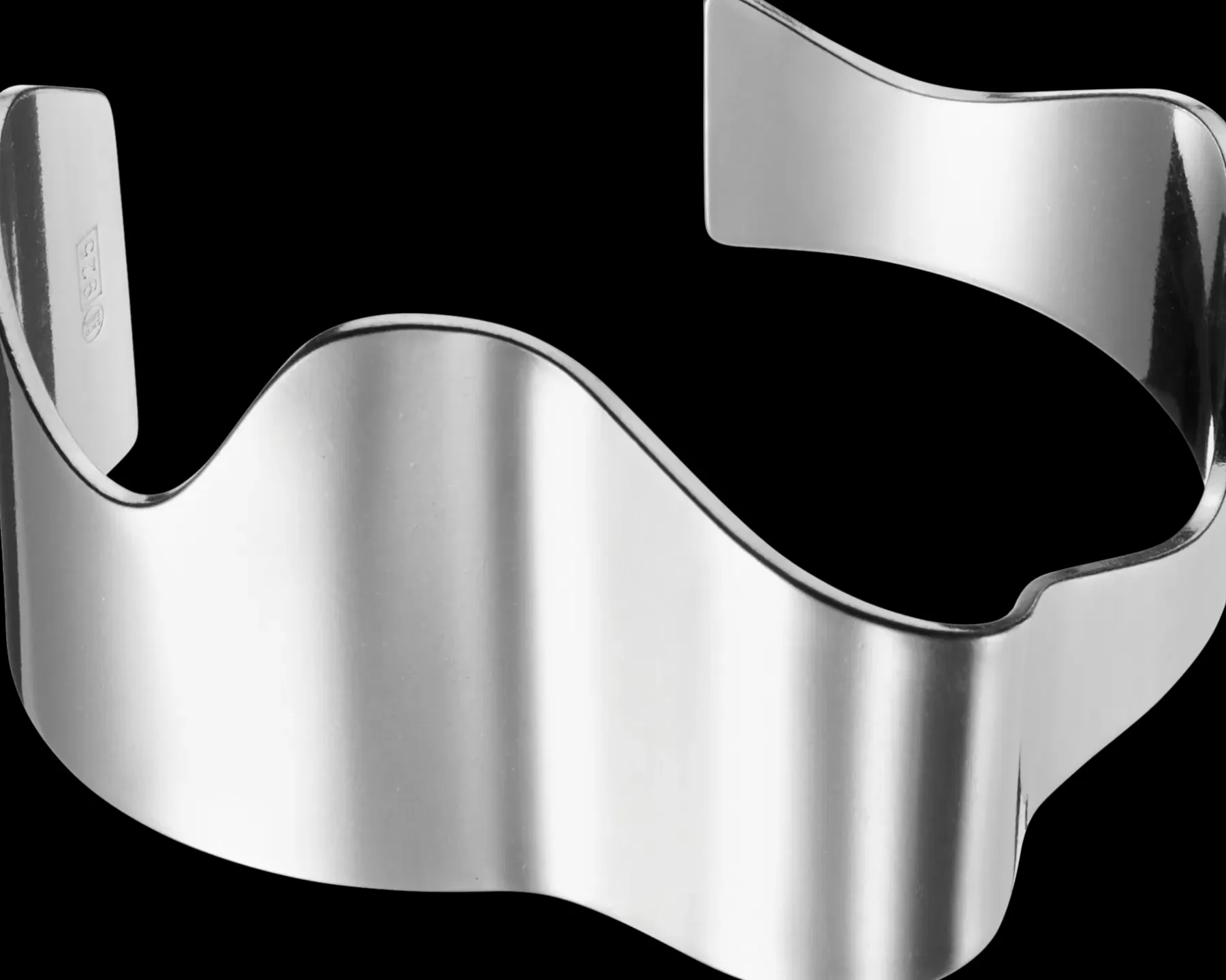 Vetovoima-rannekorussa on arkkitehtoonista jylhyyttä ja näyttävyyttä, mutta samalla se aaltoilee kepeästi kuin tuulessa hulmuava silkki. Vetovoima-korujen suunnittelun lähtökohtana on ollut oivaltava muotoilu, leikkimielisyys ja yhdisteltävyys. Voit yhdistää rannekorun toiseen Vetovoima-rannekoruun – kapeaan tai leveään, hopeiseen tai pronssiseen – vieläkin näyttävämmäksi kokonaisuudeksi. Korun halkaisijakoko 6,3=19,5 cm. Leveys 31 mm. Suunnittelija Juslin-Maunula.