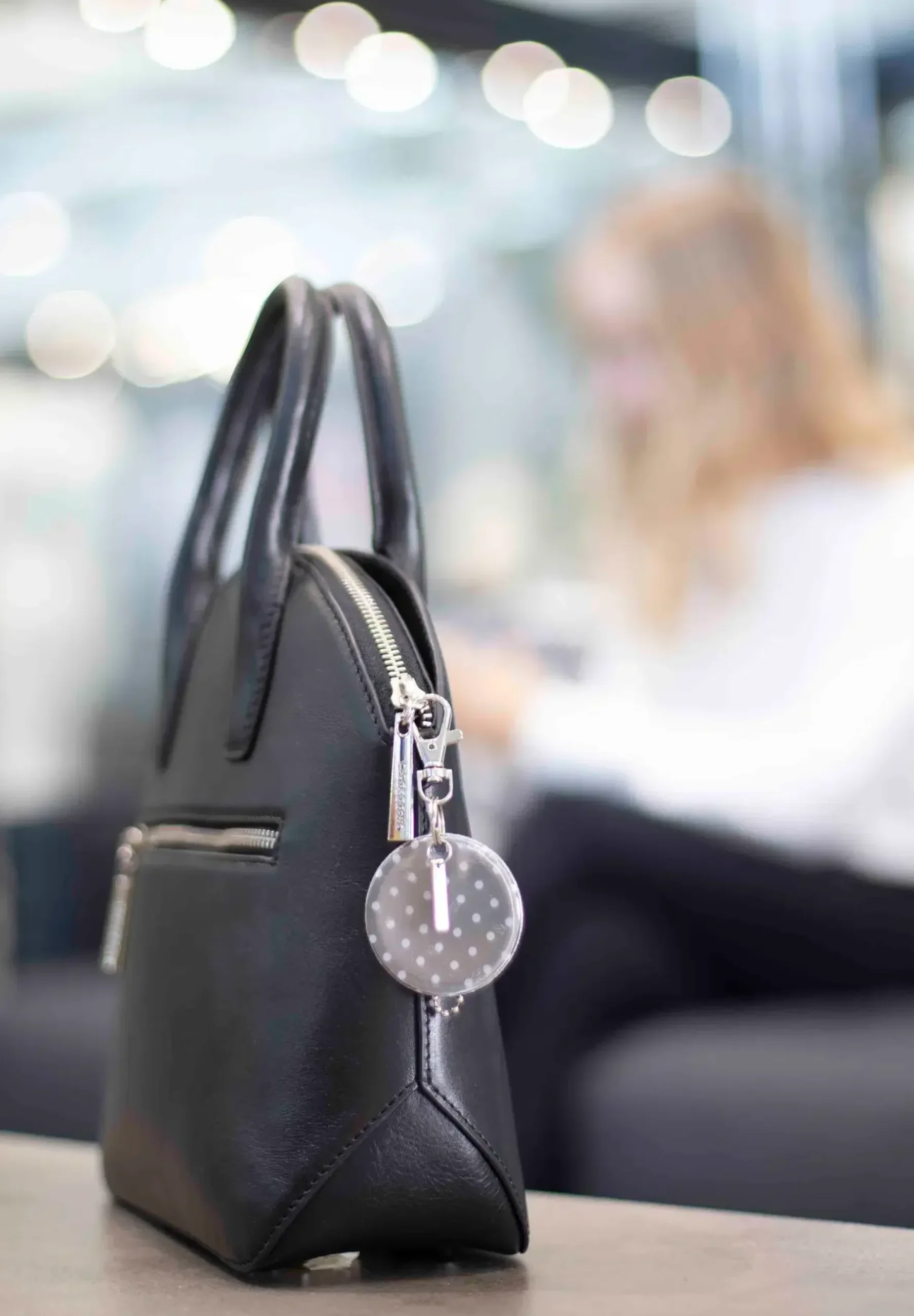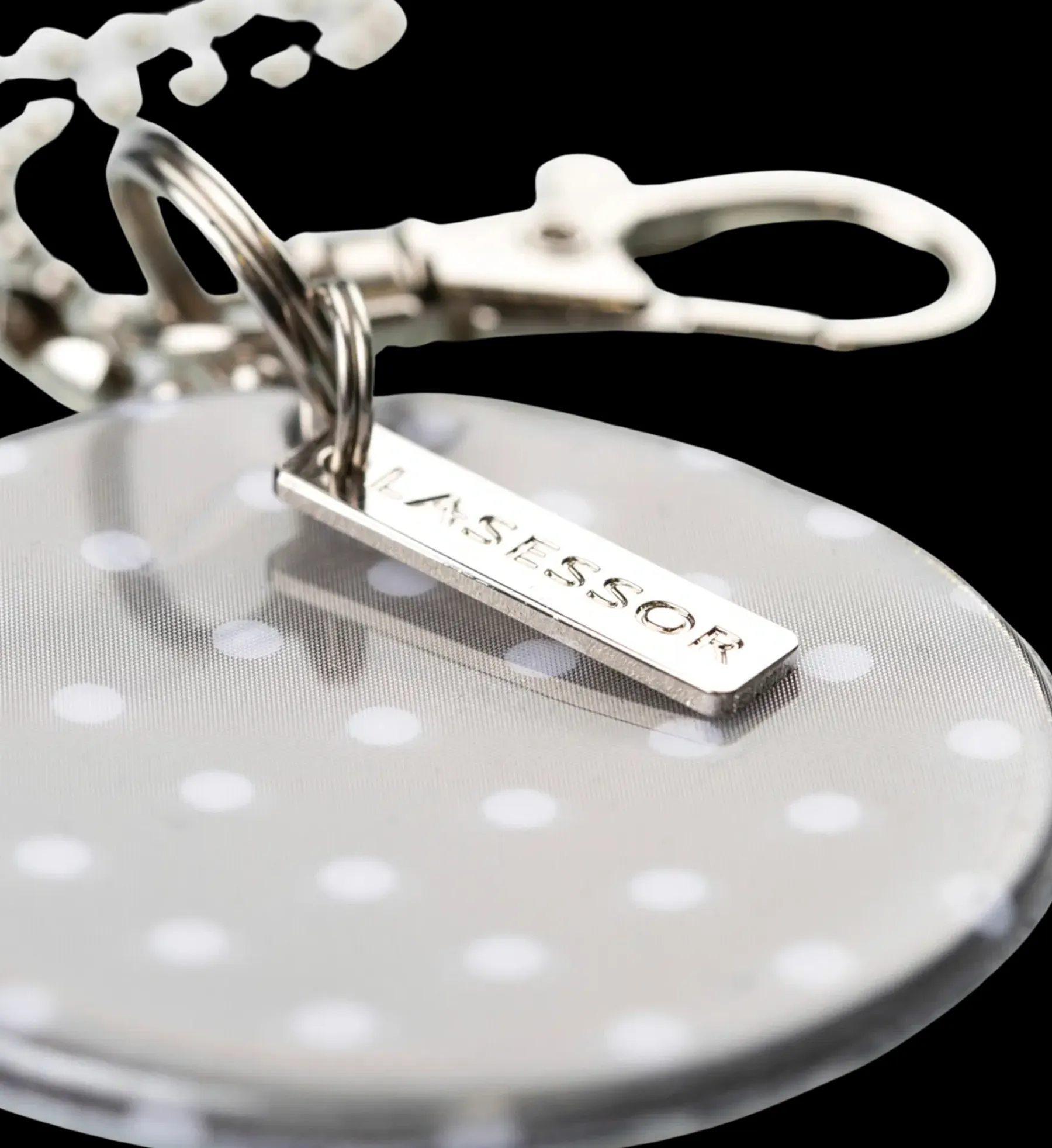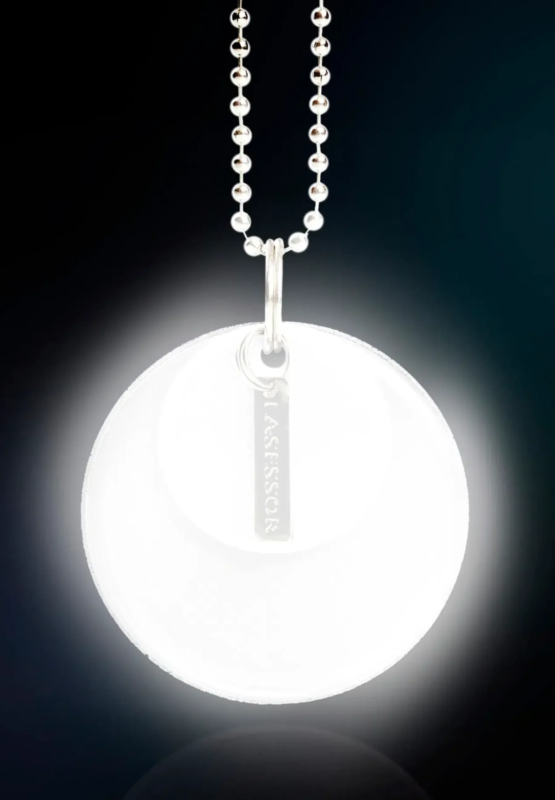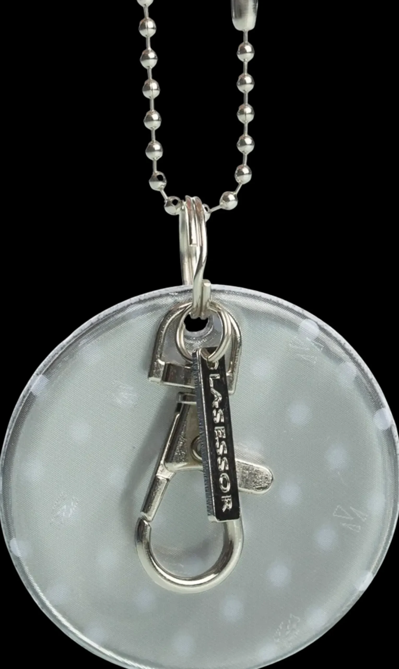 Suomessa suunniteltu tyylikäs pyöreä heijastin syksyn ja talven pimeyteen. Kiinnikkeenä palloketju ja papukaijalukko.