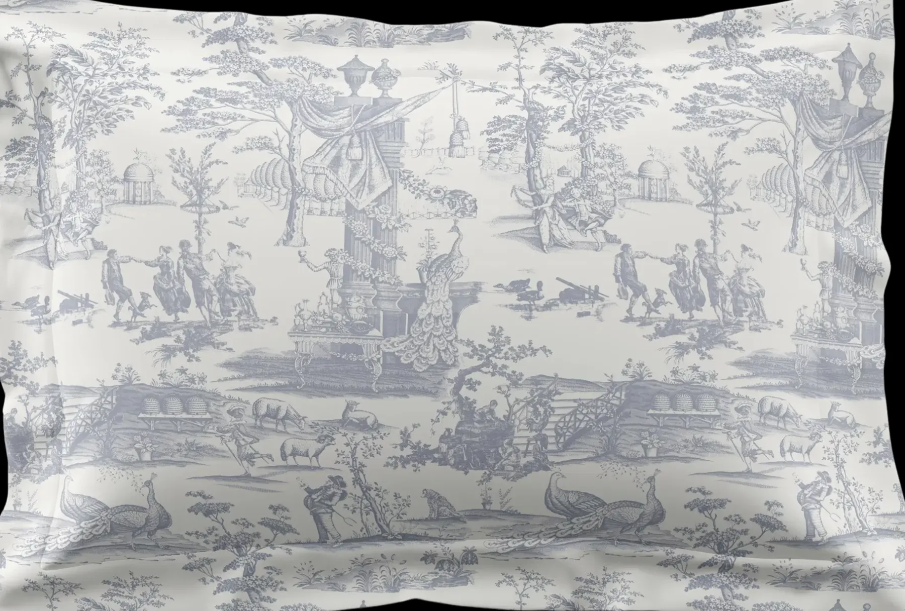 Tämä tyypillinen 1700-luvun lopun ranskalainen maisemajuliste kuvaa kaunista maalaismaisemaa tanssivien ihmisten ja vaeltelevien riikinkukkojen ja lampaiden kanssa. Painettu 100 % 200TC-puuvillaperkaalille.