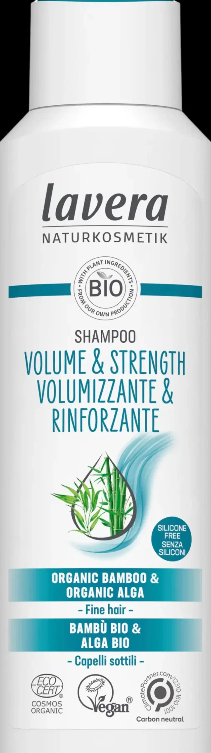 Luomubambua ja luomulevääsisältävä lavera Volume & Strength -shampoo antaa hiuksille tuntuvasti lisää volyymia ja vahvuutta jättäen hiukset kevyiksi. Luomubambu vahvistaa hiusten rakennetta ja sen tiedetään lisäävän täyteläisyyttä ja volyymia. Luomulevää arvostetaan hiustenhoidossa sen suuren ravinteikkuuden vuoksi. Tämä shampoo on suunniteltu erityisesti hennoille hiuksille.