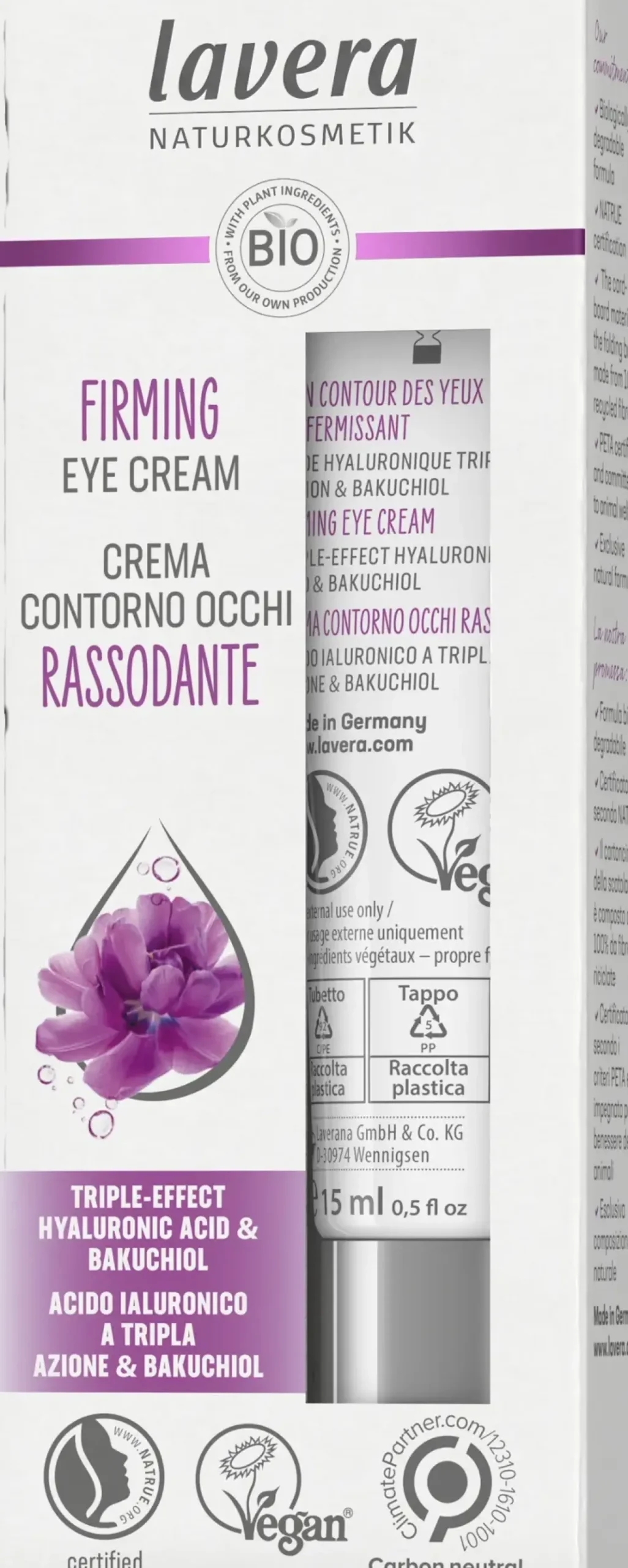 Kiinteyttävä silmänympärysvoide torjuu ihon ikääntymisprosessia luonnollisella tavalla. Sisältää kolmitehoista hyaluronihappoa sekä bakuchiolia.