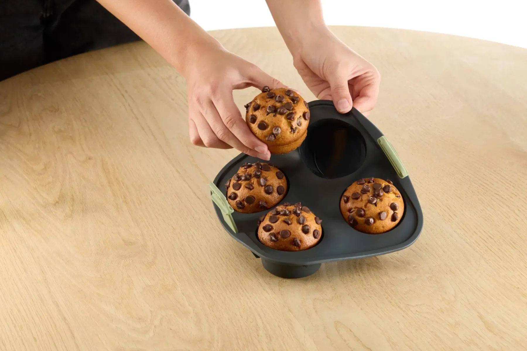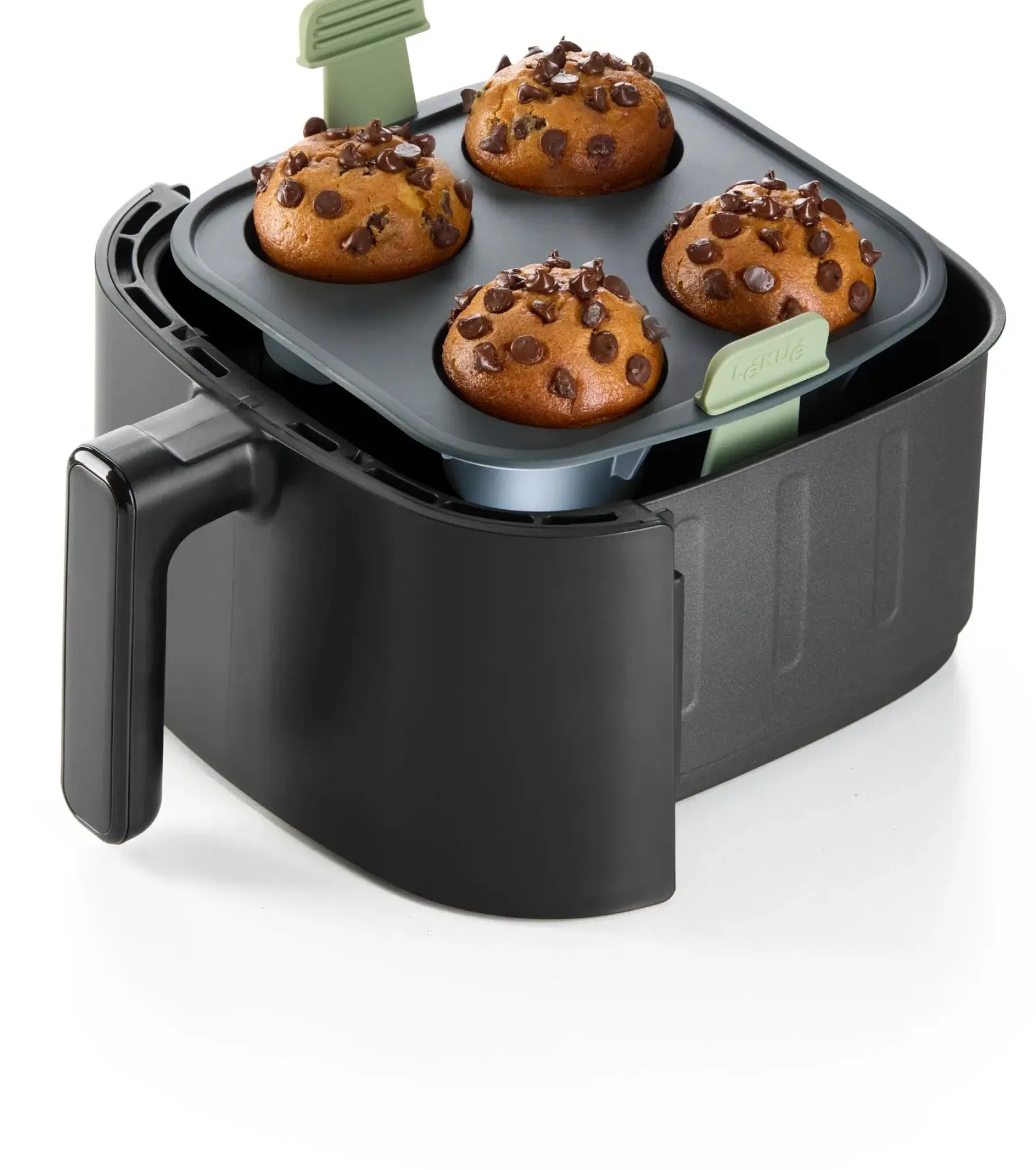 Joustava, tarttumaton rakenne helpottaa irrottamista.Valmista herkulliset muffinit helposti air fryerissä. Valmista alle 30 minuutissa!Ulosvedettävät, liukumattomat kahvat tarjoavat tukevamman ja miellyttävämmän otteen.Nosta kahvoista korin helppoa irrottamista varten ja laske kahvat alas, kun haluat hyödyntää air fryerin tilan maksimaalisesti kypsennyksen aikana.Vahvistettu ja vakaa pohja miellyttävämpää käyttöä varten.Sopii air fryeriin, uuniin, mikroaaltouuniin, jääkaappiin ja astianpesukoneeseen.Valmistettu 100 % platinasilikonista, ei sisällä BPA:ta.Käytä aina patakintaita tai patalappuja palovammojen välttämiseksi.
