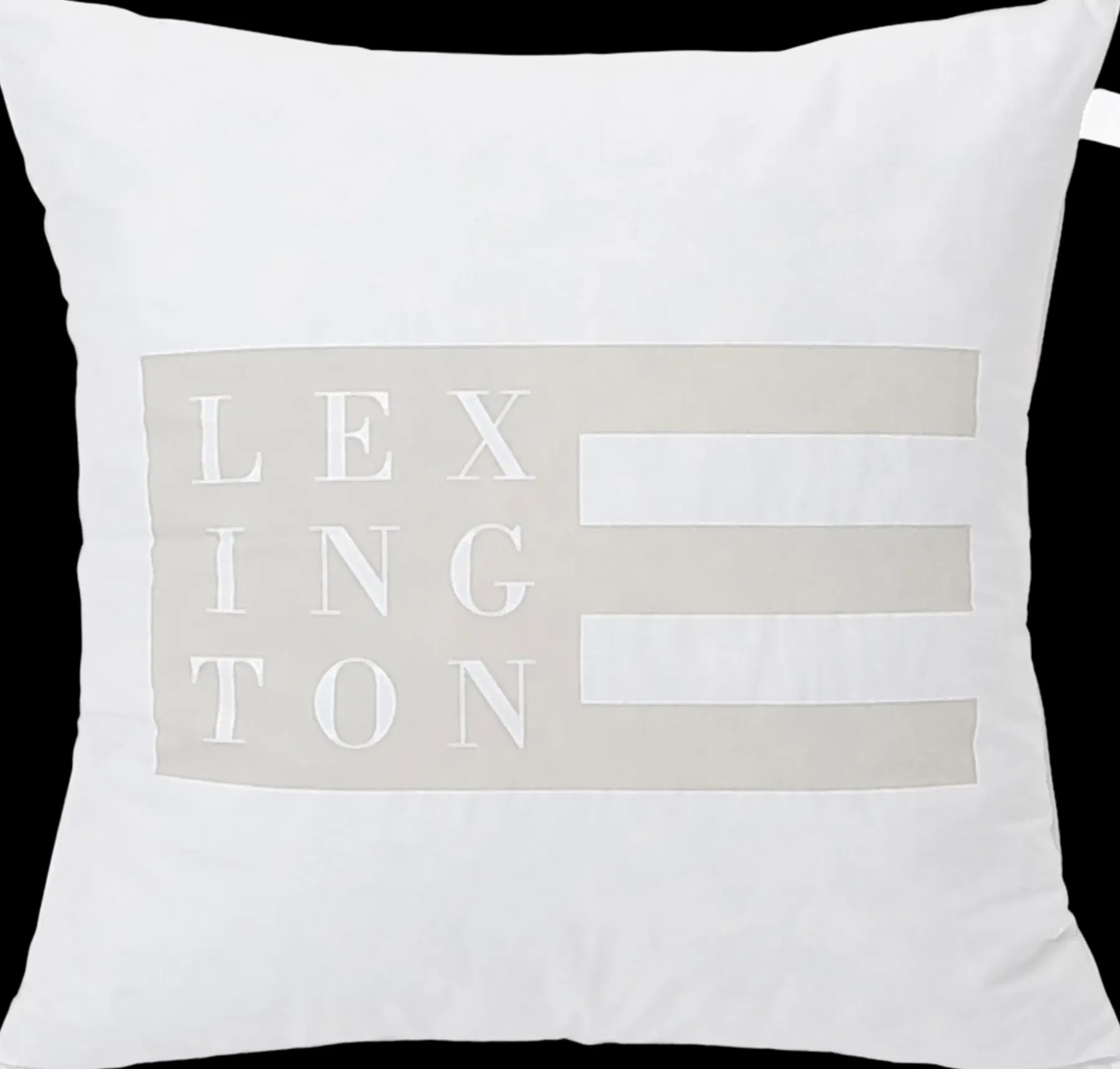 Lexingtonin höyhen sisätyyny korostaa mukavuutta ja toimivuutta, siinä on beige Lexington painatus etupuolella. Täyte on 100% kierrätetty höyhen ja päällyskangas on 100% puuvillaa.
