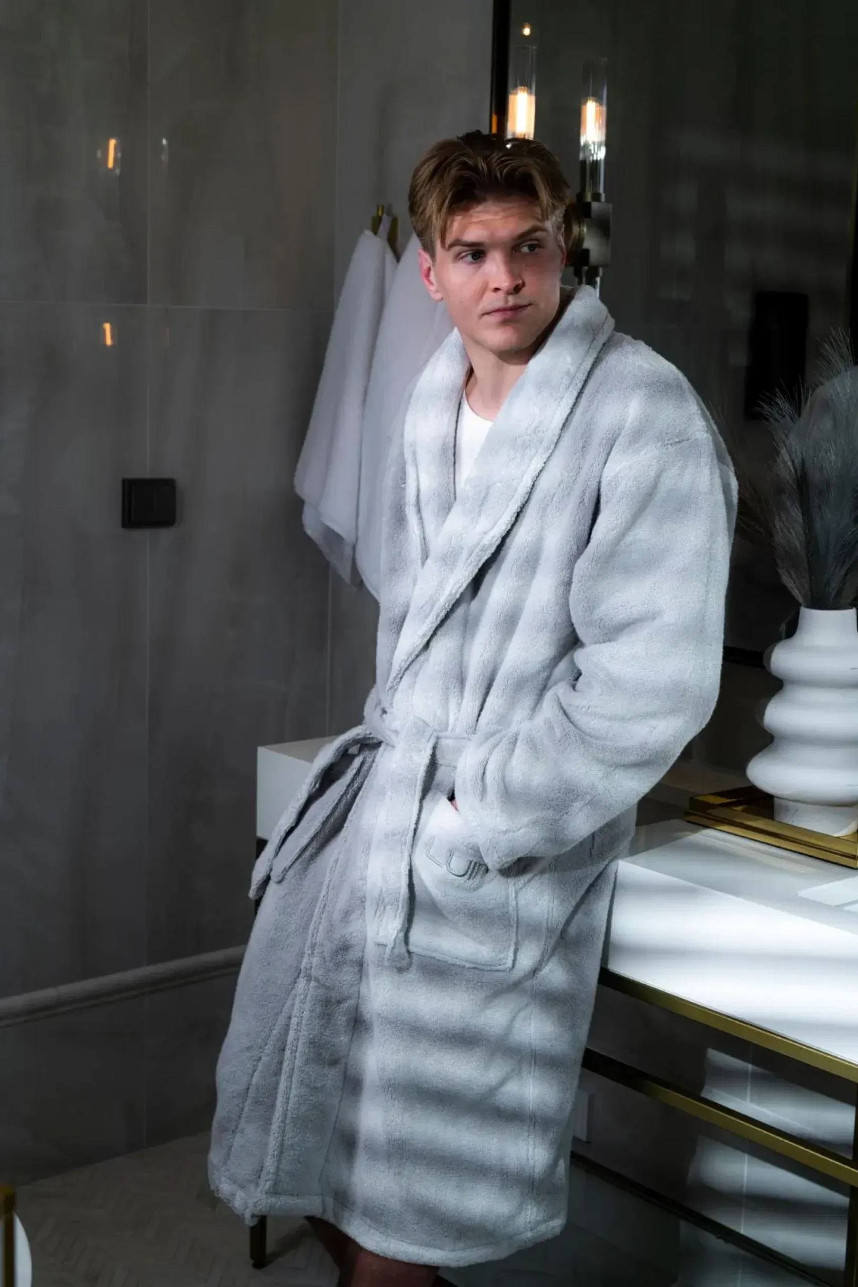 Tämä ylellisen muhkea kylpytakki on modernia suomalaista designia sinulle, joka tykkäät hemmotella itseäsi. Kylpytakki on valmistettu Luin Livingin Your Home – Your Spa -tuoteperheen omasta pyyhemateriaalista, joka on ylellisen pehmeää ja erittäin imukykyistä 100 % puuvillaa. Kylpytakissa on suuret taskut joissa on tyylikkäät metallihohtoiset brodeeraukset. Lisäksi vyö on kätevästi kiinni takin selkämyksessä. Materiaalin ylellisyys sekä harmoninen värimaailma tuo todellisen spatunnelman jokaiseen kotiin.