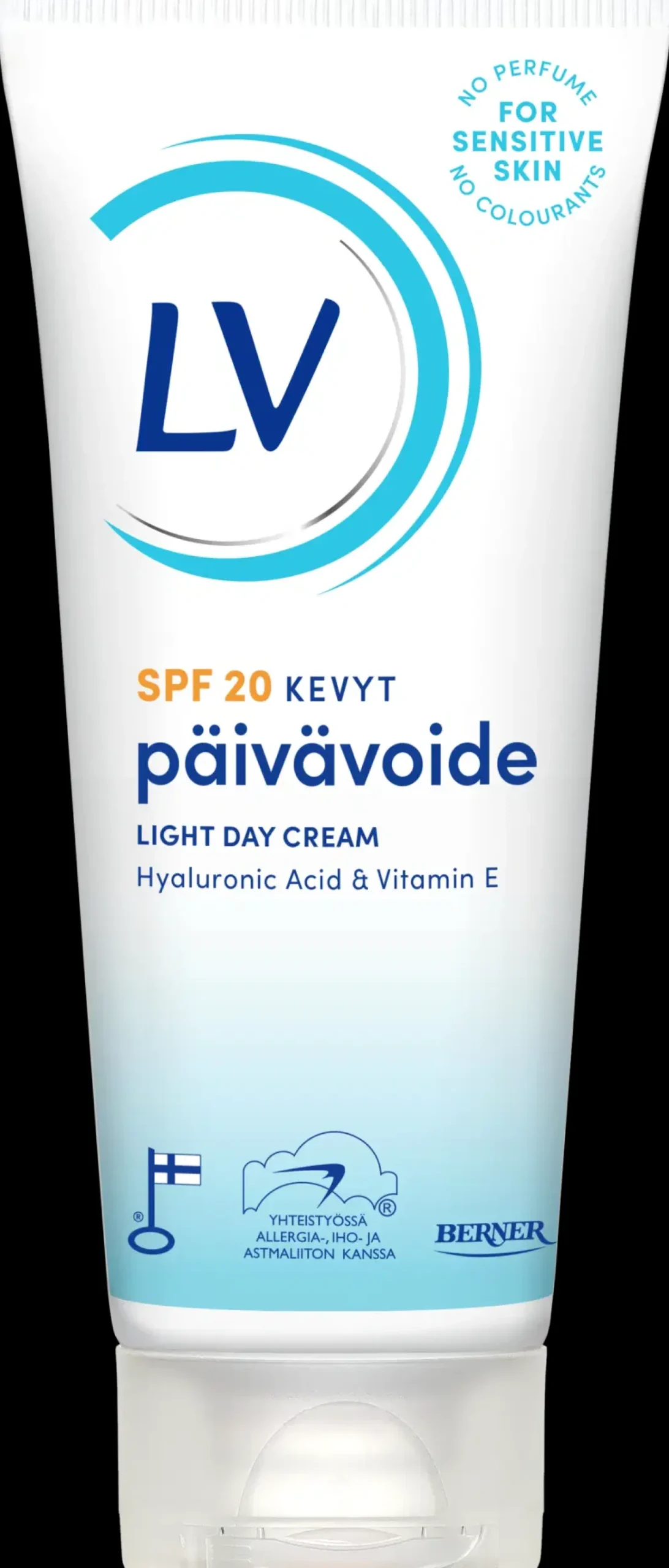 LV Suojaava päivävoide SPF 20 on pehmeän ja miellyttävän tuntuinen päivävoide, joka imeytyy nopeasti. Tuotteen sisältämä hyaluronihappo kosteuttaa tehokkaasti ihoa ja prebiootti ylläpitää ihon tasapainoista mikrobiomia ja vahvistaa siten ihon vastustuskykyä ulkopuolisille ärsykkeille. E-vitamiini toimii antioksidanttina ja ehkäisee haitallisten hapettumisilmiöiden ihoa ennenaikaisesti vanhentavia vaikutuksia. Voiteen sisältämä aurinkosuojakerroin SPF 20 suojaa ihoa tehokkaasti UVA- ja UVB- säteiden haitallisilta vaikutuksilta, kuten ihon palamiselta ja ennenaikaiselta vanhenemiselta. Sopii myös meikin alle käytettäväksi.