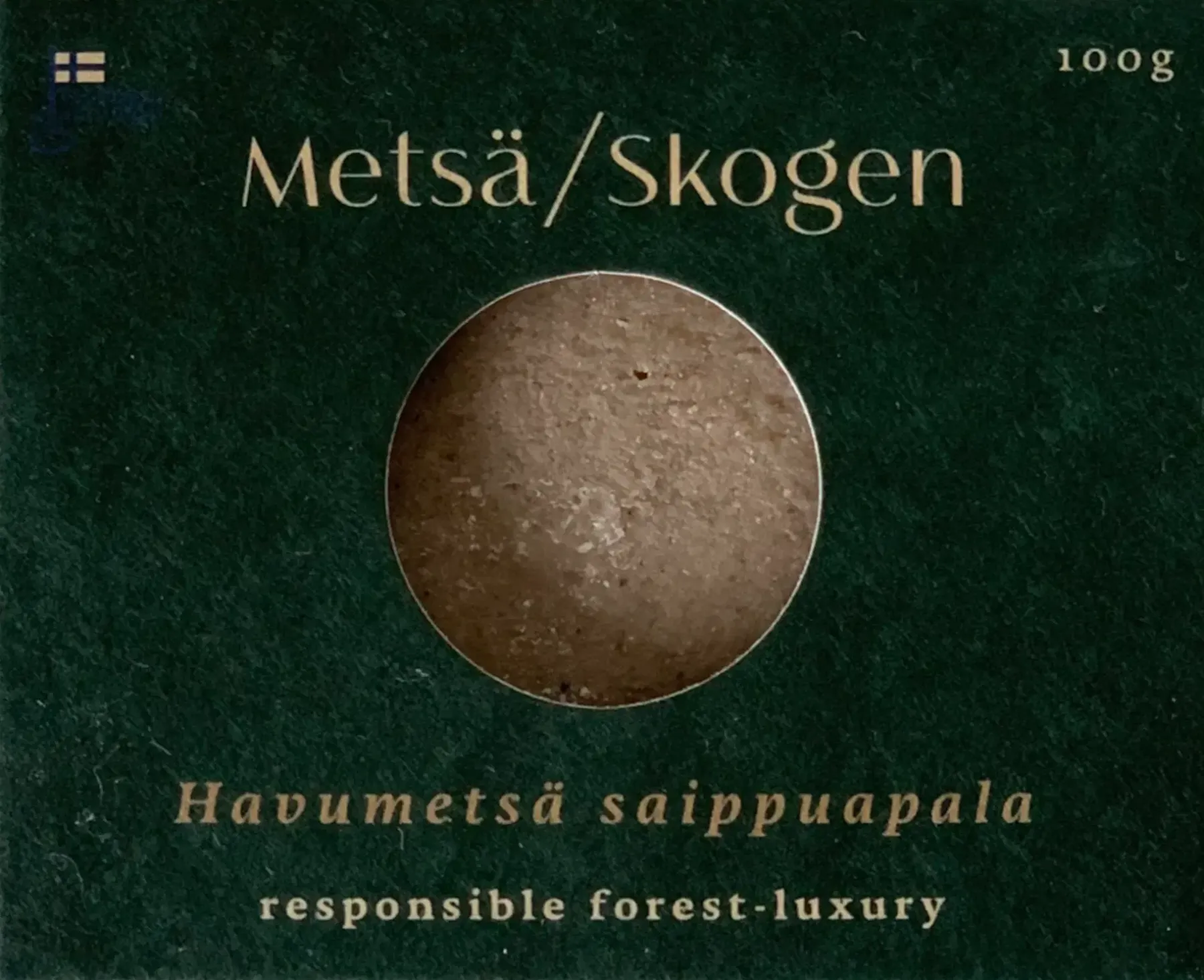 Metsä/Skogenin tuotteet valmistetaan kotimaassa käsityönä yhdessä suomalaisen pientuottajan kanssa. Tuotteet ammentavat suomalaisen metsän puhtaista raaka-aineista ja ovat toteutettu rakkaudella ihmisiä sekä luontoa kunnioittaen. Suolasaippuassa on käytetty Himalajan ruususuolaa sekä hoitavia öljyjä, kuten kookosöljyä, oliiviöljyä ja risiiniöljyä. Tuoksuina käytämme vain aitoja eteerisiä öljyjä. Metsä/Skogen saippuapala soveltuu kaikille ihotyypeille, puhdistaa ja pesee koko vartalon. Tuote soveltuu myös kasvoille meikkien puhdistukseen. Saippuapalat ovat tavanomaista kovempia, joten ne kestävät käytössä pidempään.