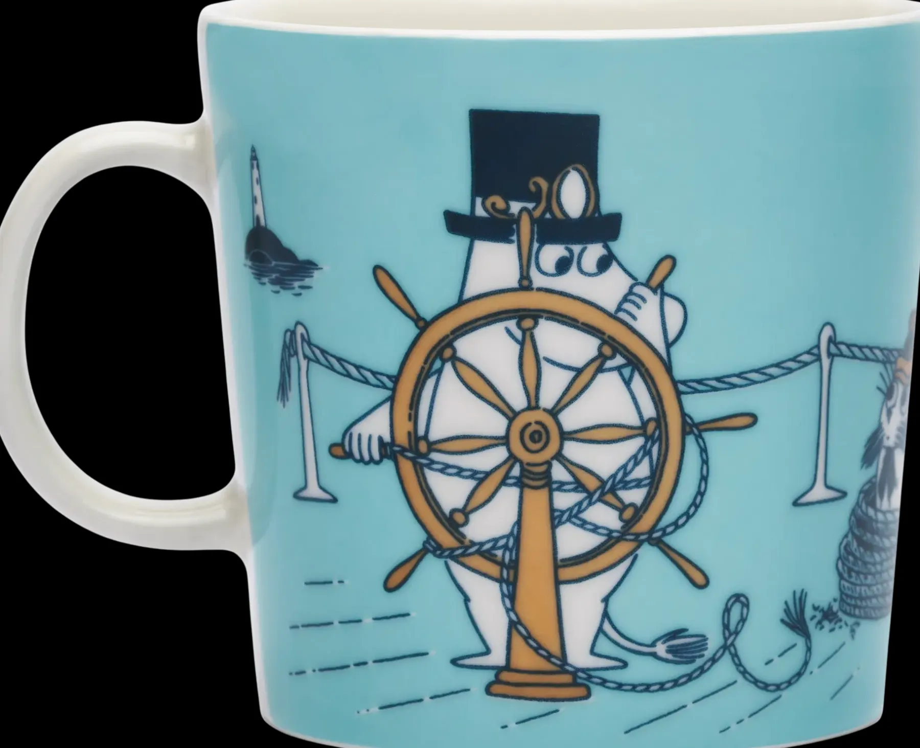 C-mukissa Tuu-tikki ja Muumit ovat lähteneet seikkailuun. Merellä tahmatassu-lauma nousee laivaan, ja yksi heistä puree köyden poikki. Hän saa kuitenkin jäädä kyytiin ja liittyä miehistön jäseneksi. Kuvitukset pohjautuvat sarjakuvaan ”Muumipeikko merillä”. Moomin Arabia muki 0.4 l, ABC C