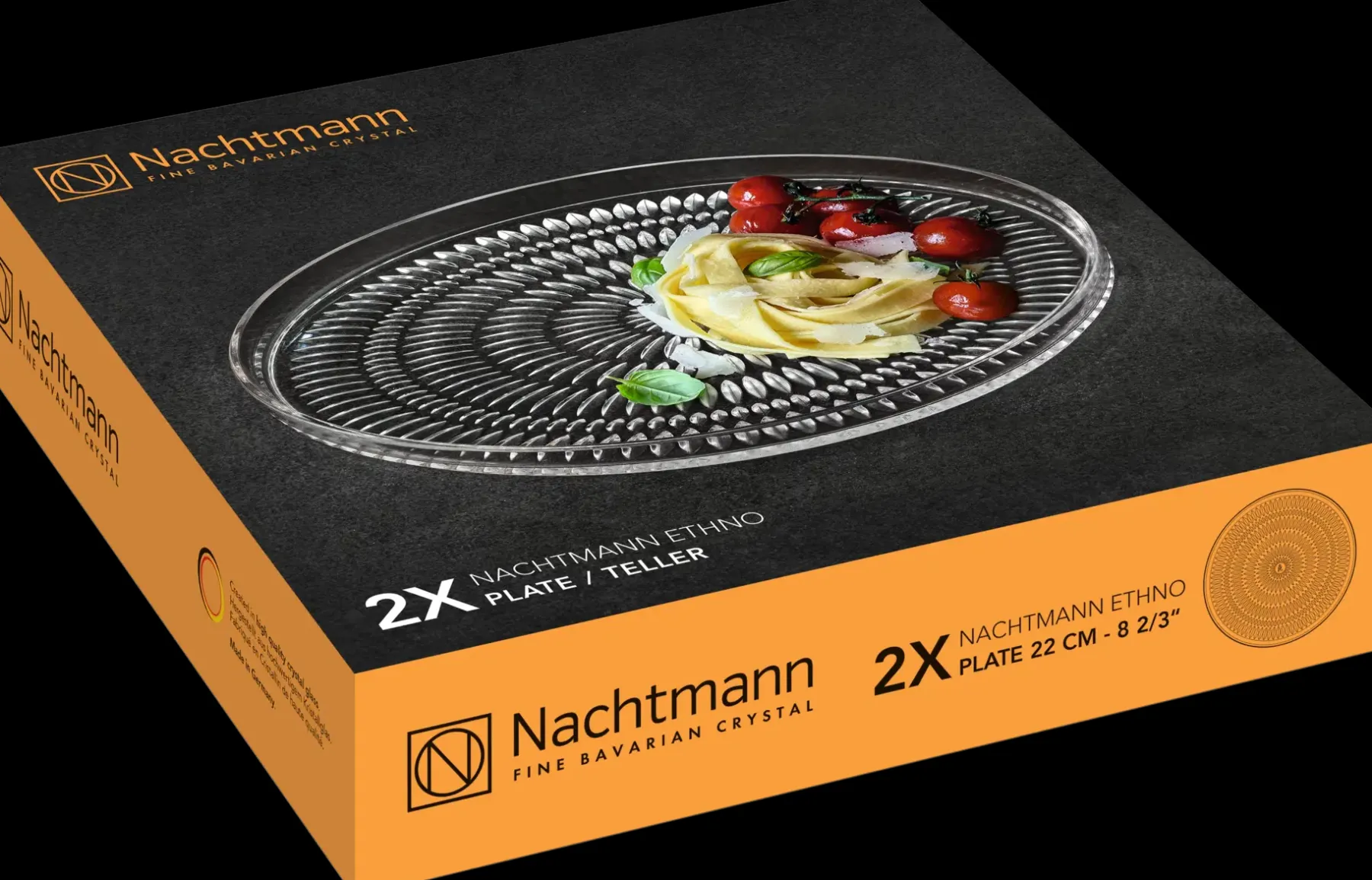 Nachtmann Ethno -sarjan lasilautanen soveltuu kattaukseen ja tarjoiluun. Kaunis lasilautanen sopii täydellisesti arjen herkkuhetkiin sekä juhlapöytään. Upea kuvio ihastuttaa! Pakkaus sisältää kaksi lautasta. Lautasen halkaisija: 22 cm. Nachtmann Ethno sarja huokuu rauhallista maalaisromantiikan tuntua. Astiasto sopii hyvin arjen herkkuhetkiin sekä juhlapöytiin. Astioiden kaunis kuviohionta heijastaa valoa upeasti. Riedel-konserniin kuuluva Nachtmann edustaa maailman huippua design-lasitavaroissa. Ultramodernit tehtaat Saksassa sekä parhaat raaka-aineet takaavat kirkkaan ja kestävän lopputuloksen. Valikoima sisältää kauniita kattaustuotteita sekä design-vaaseja. Nachtmannin tunnusmerkkinä on loistava hinta-laatusuhde. Kaikki tuotteet on pakattu tyylikkäisiin lahjapakkauksiin.