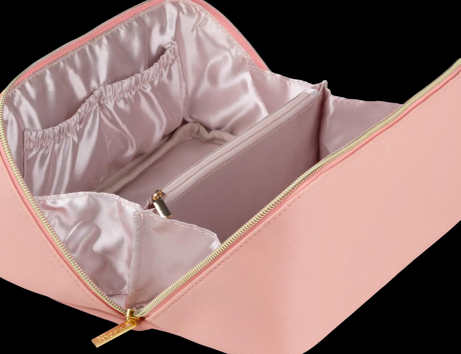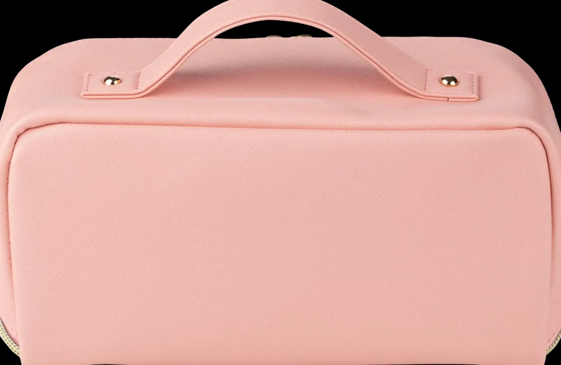 Hempeän persikan sävyinen kosmetiikkalaukku joka ilahduttaa tilavuudellaan ja käytännöllisyydellään! Saat laukussa olevan näkyviin kerralla. Sisällä kätevät säilytystaskut. Mitat: 26 cm leveä, 12 cm korkea, 11 cm syvä.