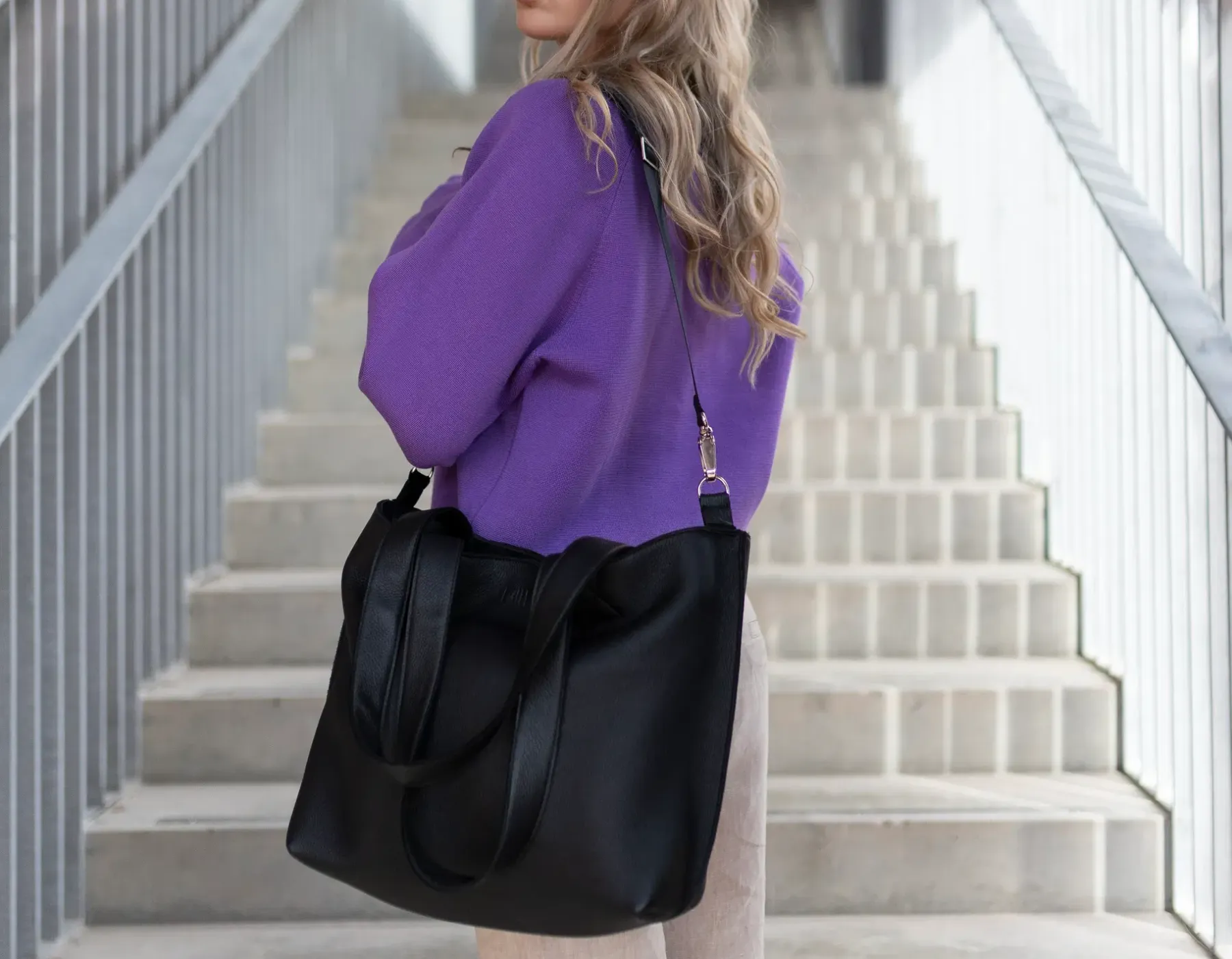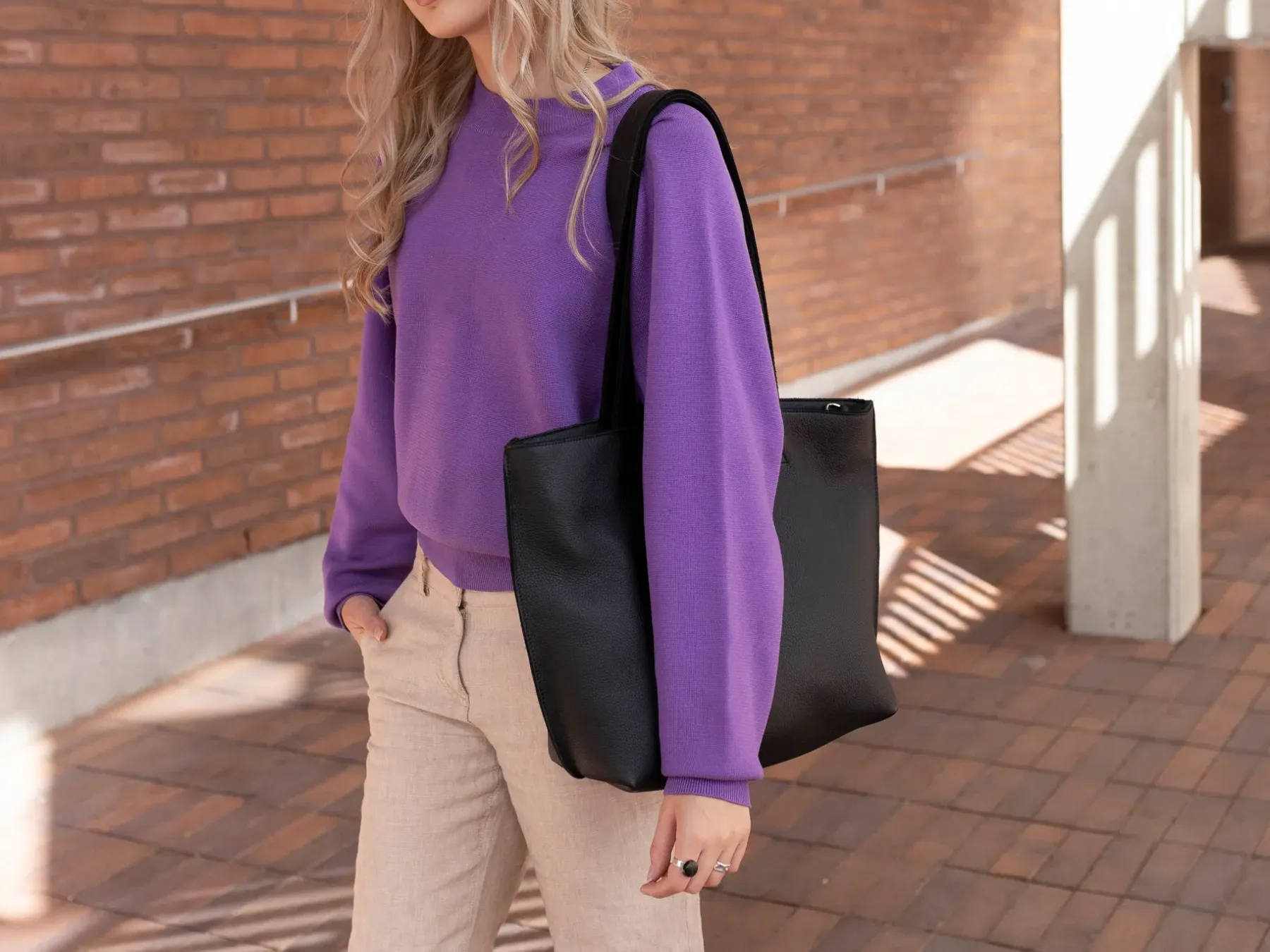 Kajo laukussa kulkee mukavasti päivän tärkeimmät tavarat. Laukku on vuoritettu mustalla kestävällä kankaalla ja se suljetaan vetoketjulla. Laukun sisällä on vetoketjullinen tasku. Kahden olkahihnan lisäksi laukussa on pitkä säädettävä hihna.