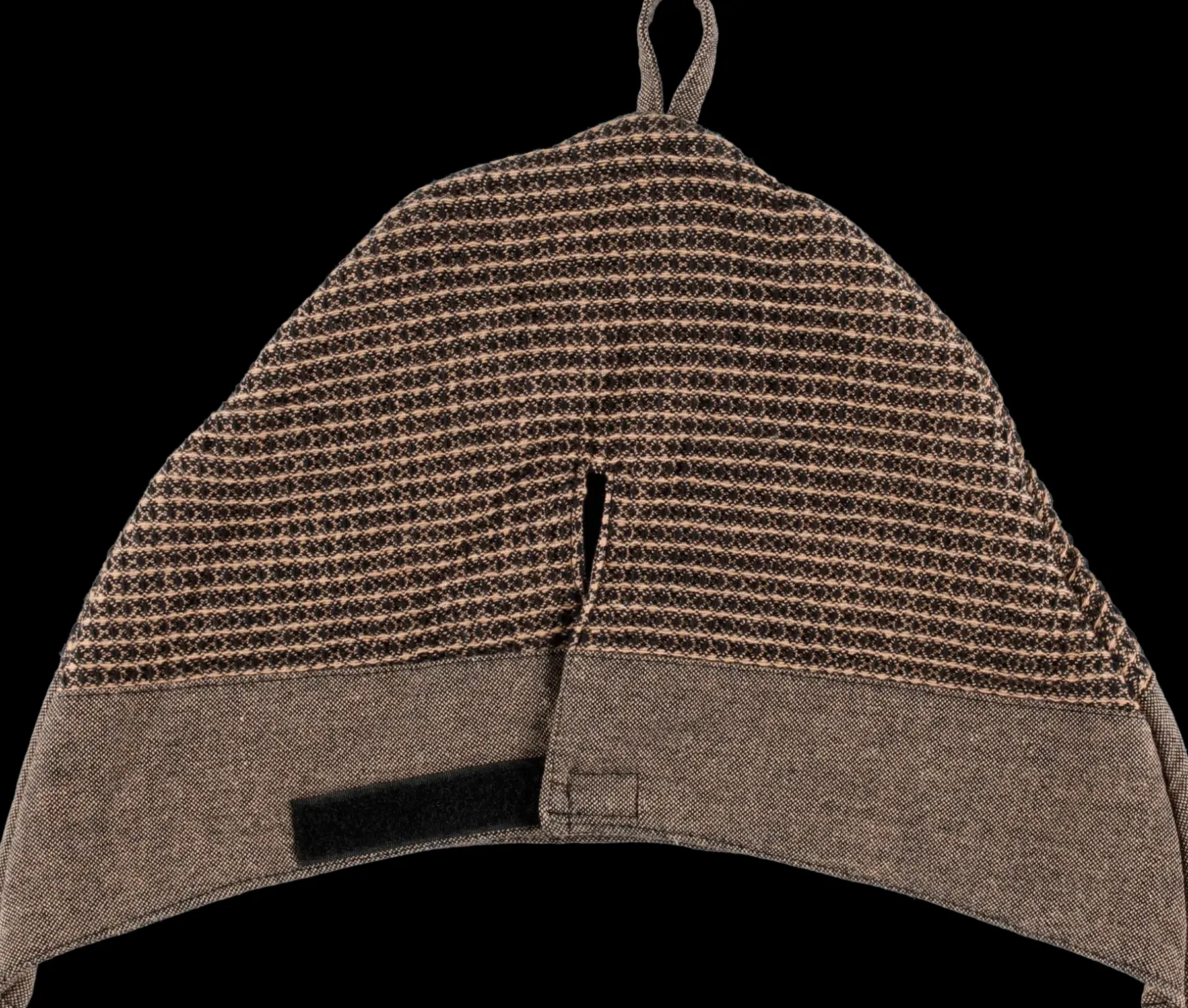 Kierrätysmateriaalista valmistettu saunahattu suojaa hiuksia ja päänahkaa löylyn kuumuudelta. Saunahattu pitää myös talviaikaan pään lämpimänä paljussa. Materiaali 75 % kierrätyspuuvilla, 25 % polyesteri.