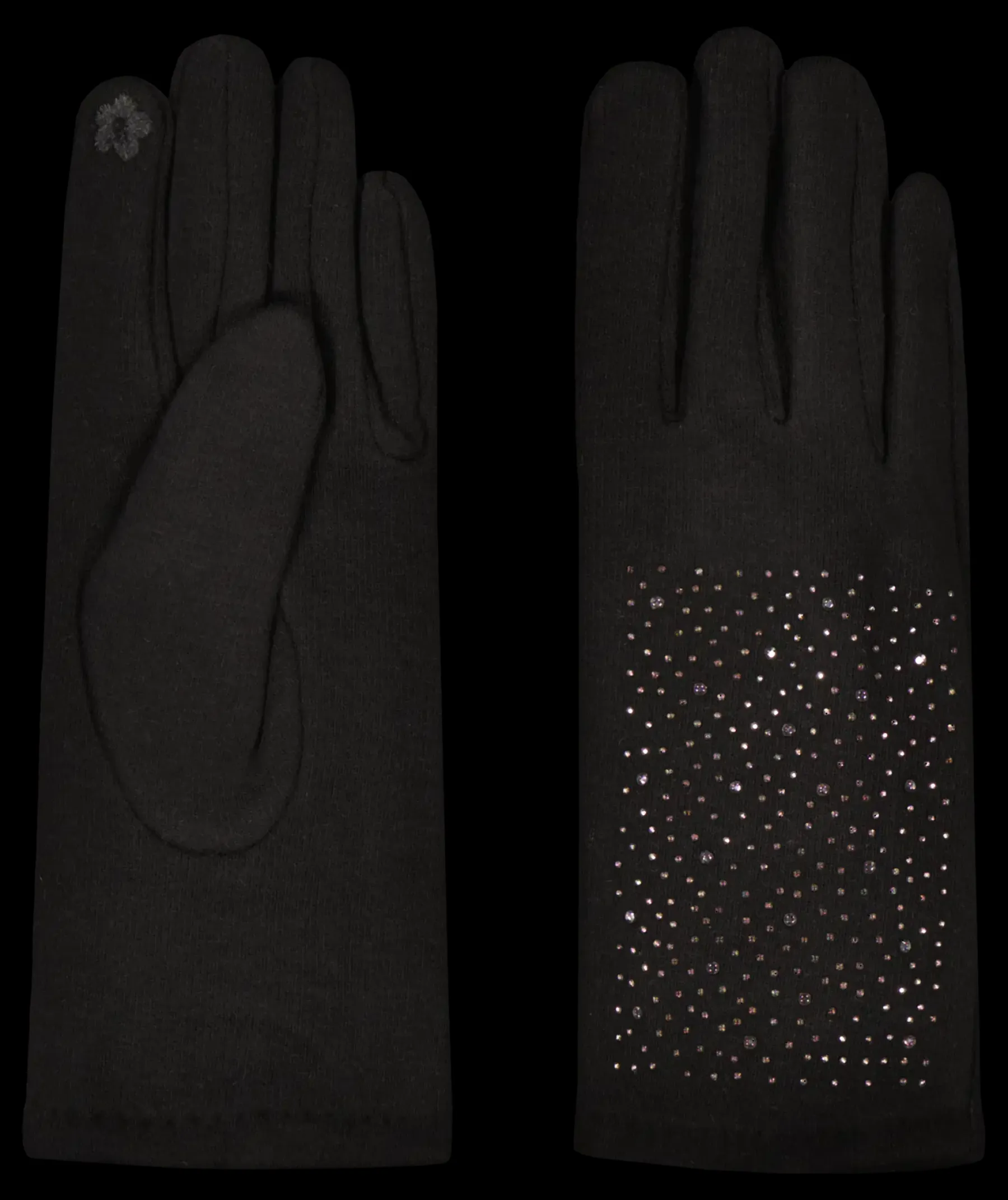 Mukavat ja joustavat trikookäsineet on valmistettu puuvillasekoitteesta ja antavat käsille suojaa viileämpinä päivinä. Etusormessa yksityiskohtana kosketusnäyttösormi sekä kämmenessä hienostunutta kimalletta.
