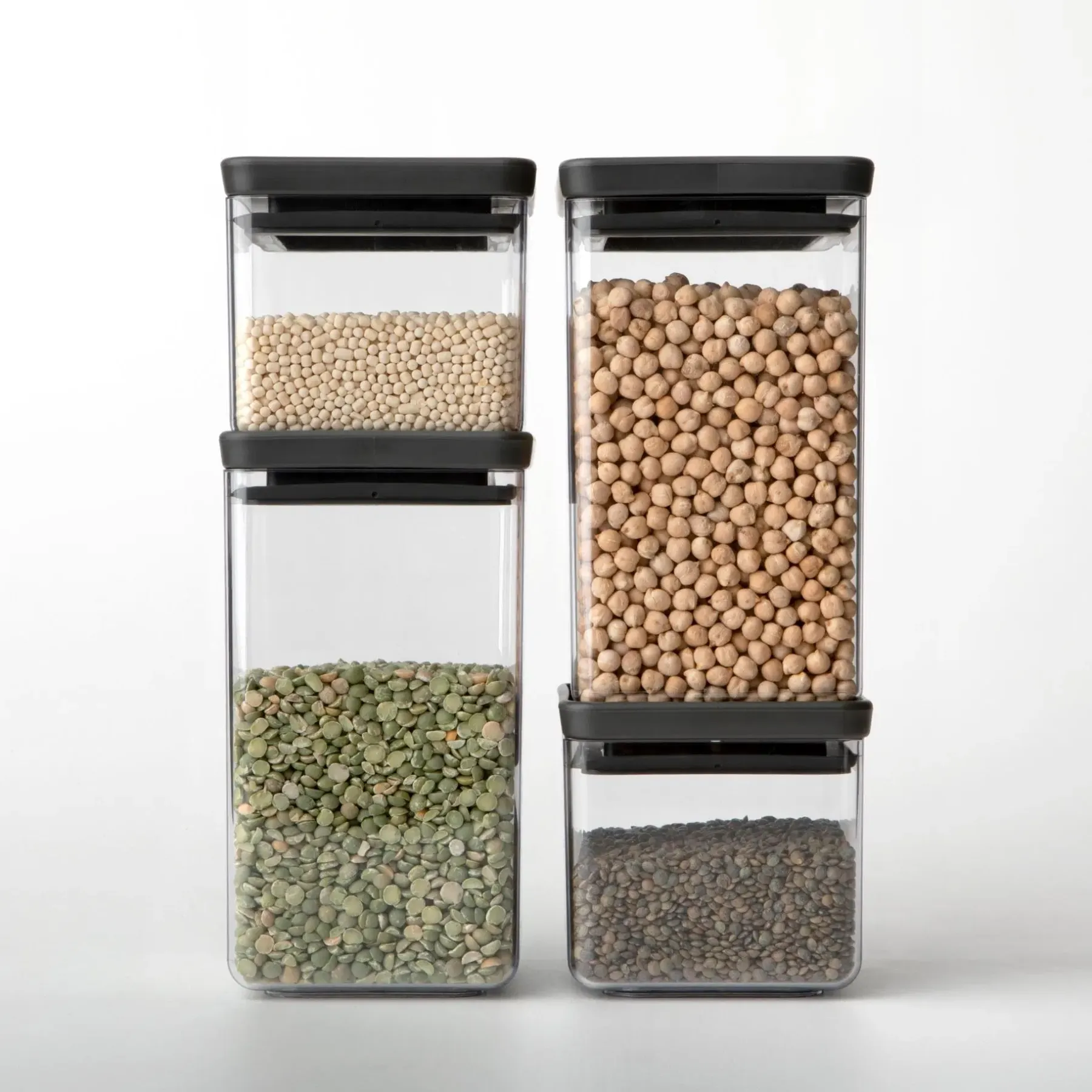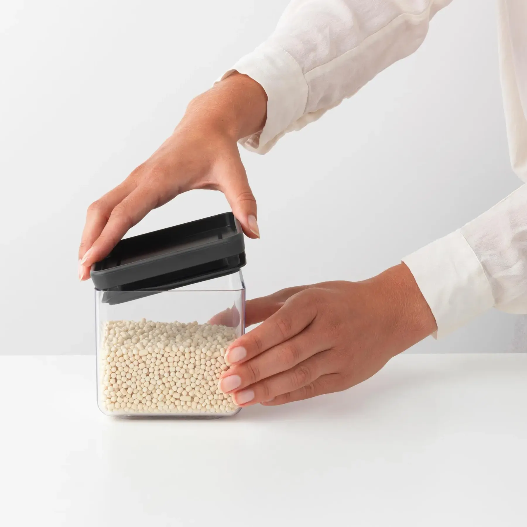 Säilytä, pinoa, suojaa. Keittiön järjestyksessä pitäminen voi olla joskus haastavaa. Brabantia on iloinen voidessaan auttaa tämän muovisen Tasty+ neliö säilytysastian kanssa. Se on vahva ja tilaa säästävä sekä näyttää sisällön yhdellä vilkaisulla. Ihanteellinen ainesten näkyvillä pitämiseen ja ruoka-aineiden tuoreena säilyttämiseen. Tilaa säästävä järjestäjä! Tilaa säästävä – pinottava ja neliö muotoilu.Pitää kuivan ja märän sisällön tuoreena pidempään – silikonitiivisteellä varustettu kansi.Sisältö aina näkyvissä – kirkkaat muovipurkit.Kestävä – valmistettu kestävästä muovista.Hygieeninen – saumaton runko, ei reunoja.Helppo puhdistaa – astianpesukoneen kestävä.Ongelmaton käyttää – 5 vuoden takuu ja huolto.Tietoinen valinta – BPA-vapaa.Kestävämpi valinta – 100% kierrätettävissä käytön jälkeen.Kaikkeen sopiva – M-koko aineksille, kuten kauraleseille tai linsseille (0,7 L).