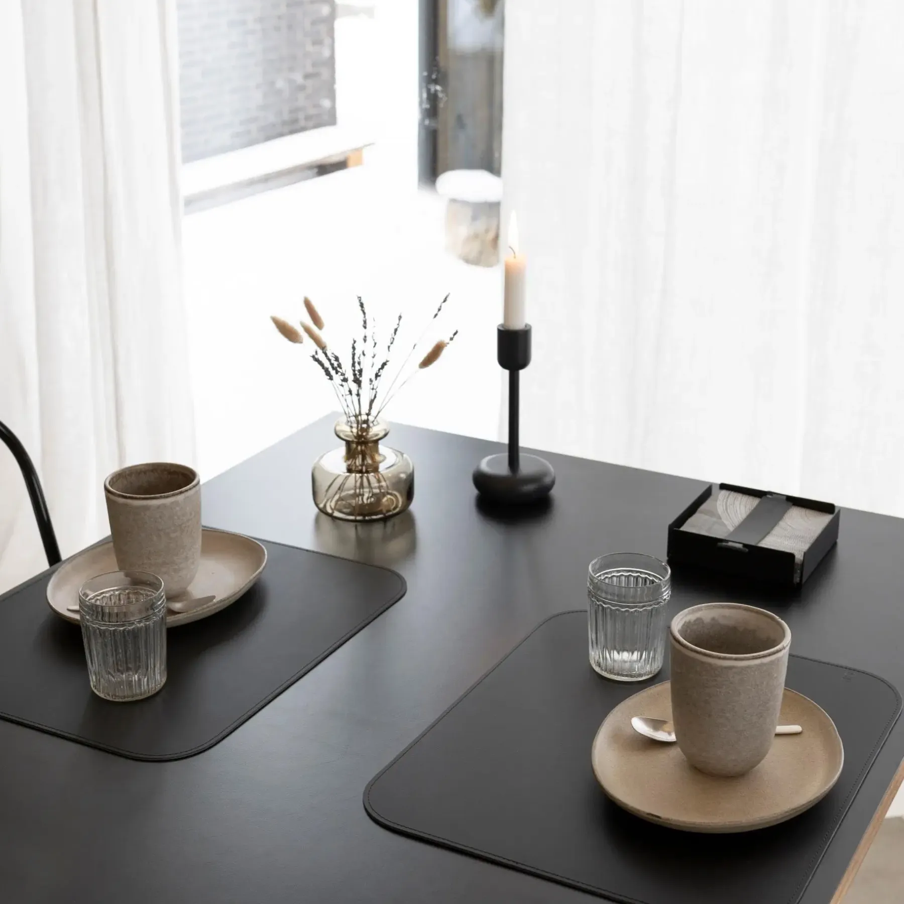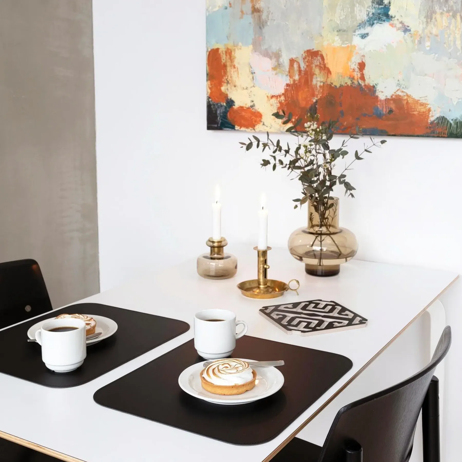 Laadukkaat, uusionahkaiset pöytätabletit viimeistelevät kattauksen suojaten samalla pöydän pintaa tahroilta ja kolhuilta. Tabletit on helppo puhdistaa kevyesti kostutetulla liinalla.