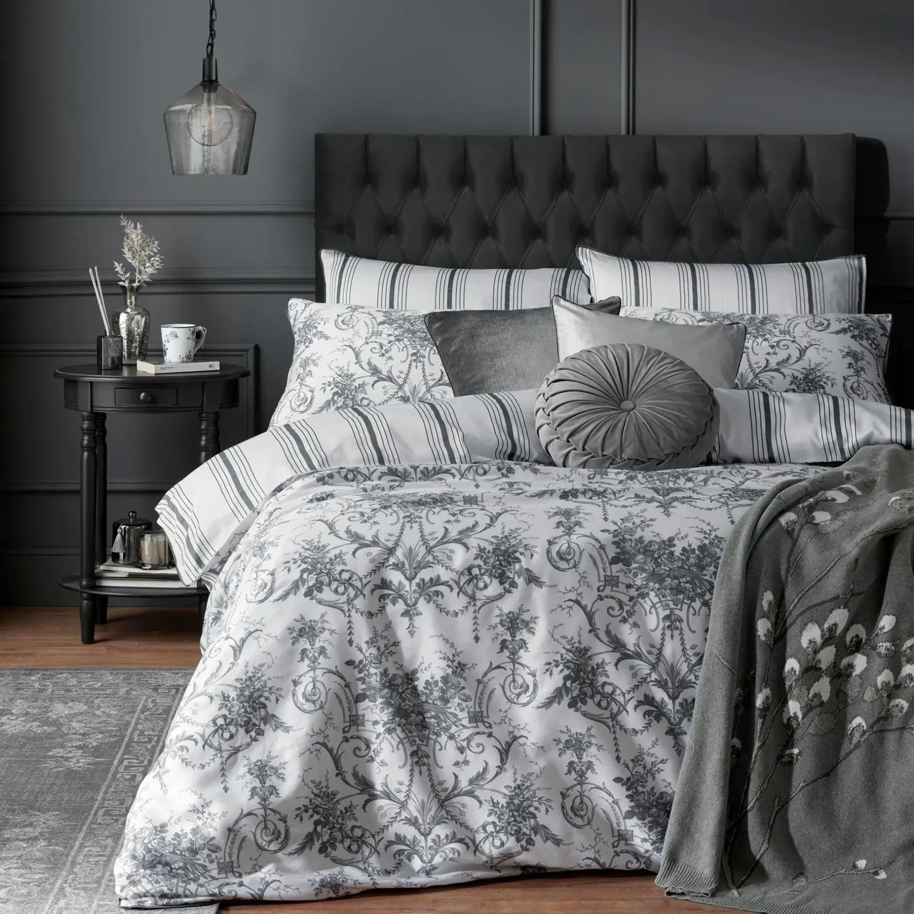 Upea, romanttisen ylellinen Laura Ashleyn kuosi, mikä on saanut inspiraation klassiesta Toile de Jouy maalauskuvaustyylistä. Materiaali puuvillasatiinia, lankatiheys 200TC.