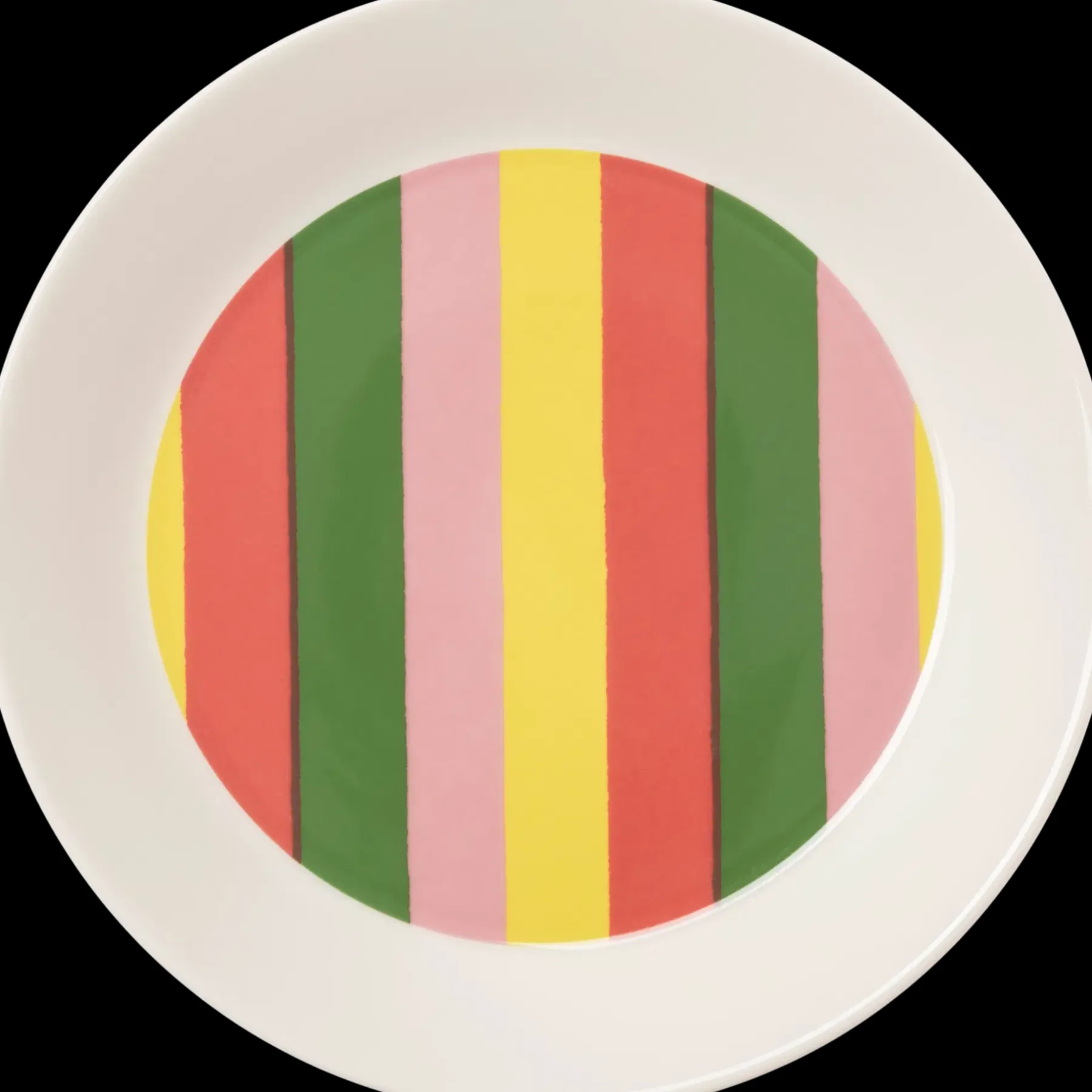 Vuokko 21 cm Pieni 4-raita -lautanen, jossa on Vuokko Nurmesniemen rohkea, vuonna 1973 suunniteltu kuvio, piristää ruokailuhetkeä kuin ruokailuhetkeä ja sopii täydellisesti sekä arkipäiväisiin aterioihin että juhlahetkiin. Sen eläväinen ja erottuva kuvio tekee siitä näyttävän lisän mihin tahansa kattaukseen ja ihanteellisen lahjavalinnan.