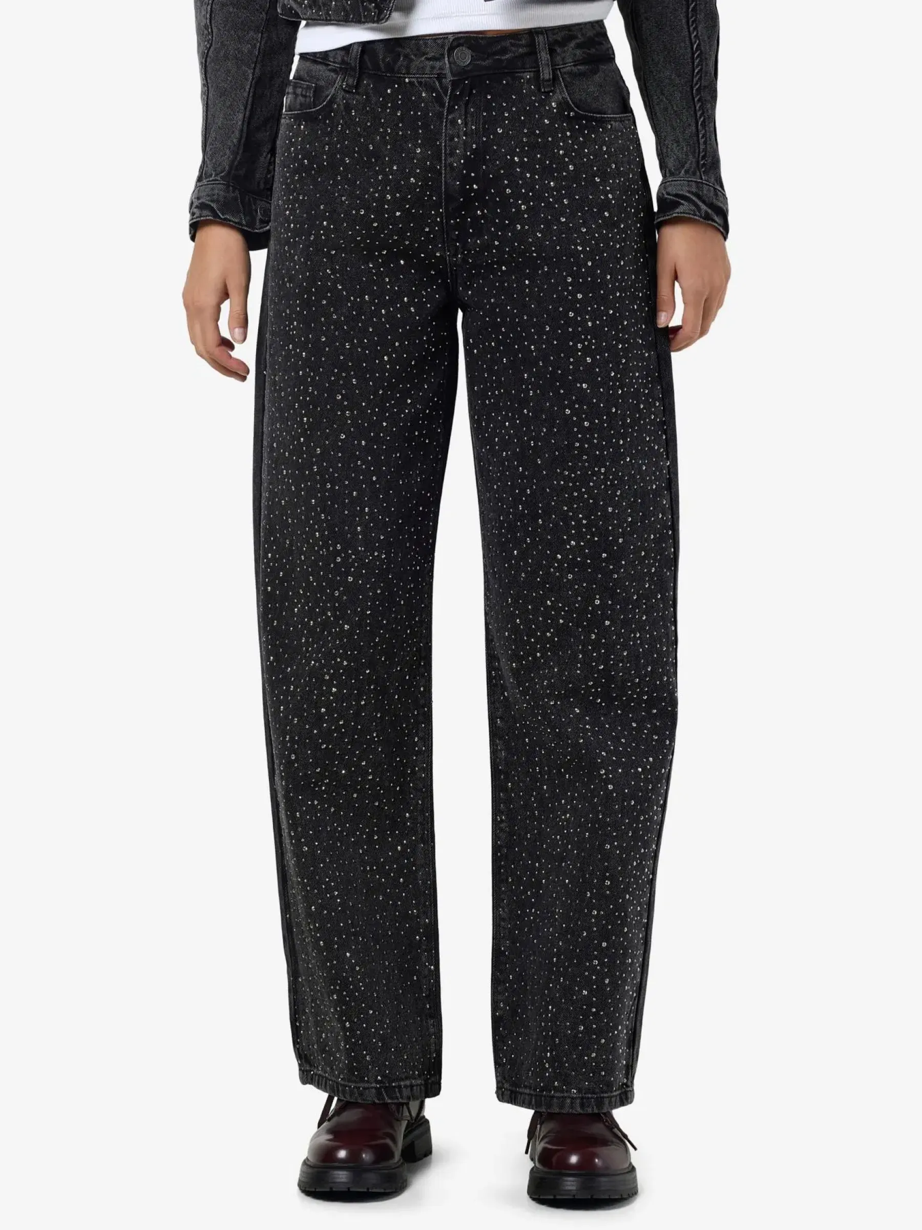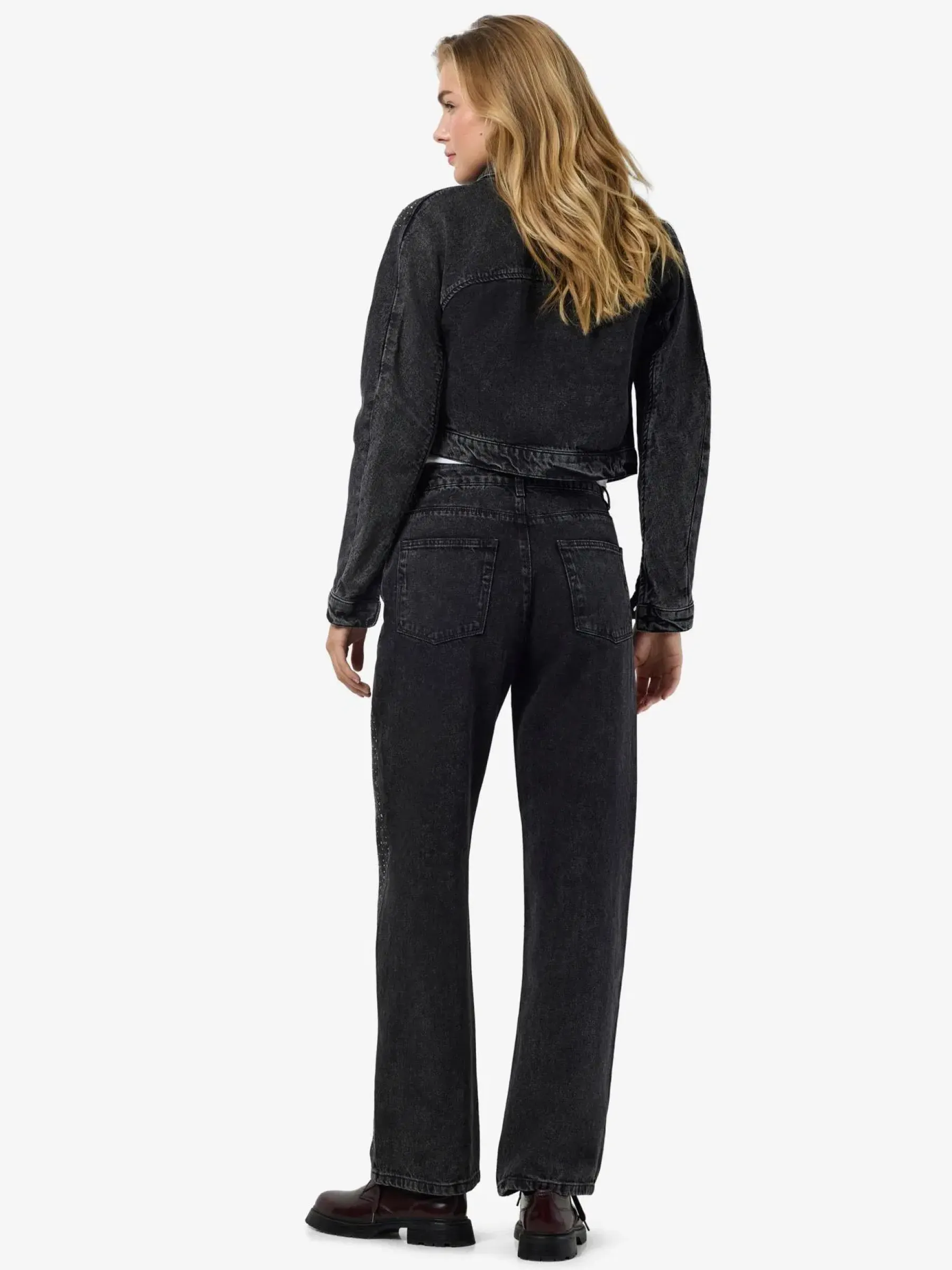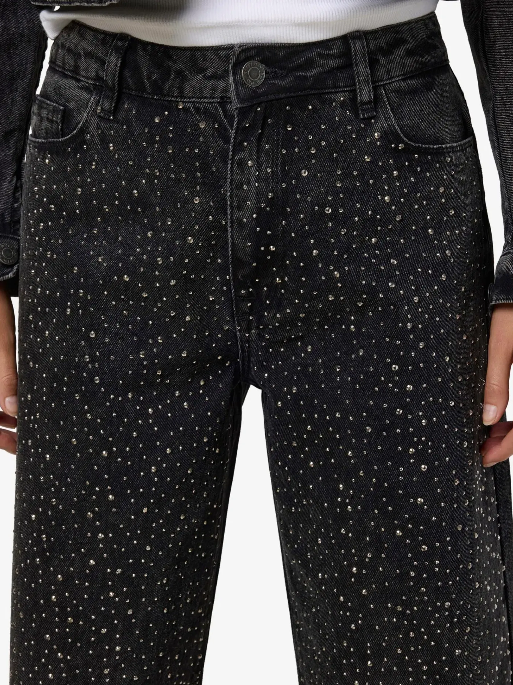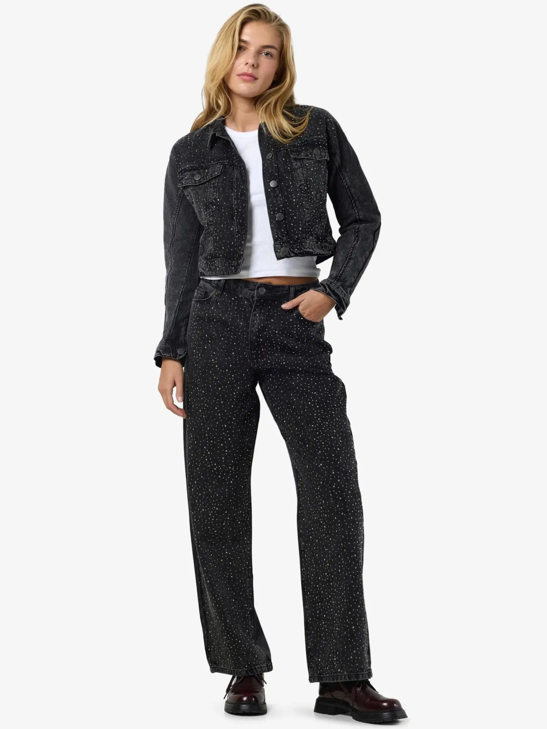 Suosittu timanttifarkku, jossa hieno mustan denimin pesu. Yhdistä pörröisen neuleen kanssa arkeen tai istuvamman ylöosan kanssa viikonlopun menoihin.
