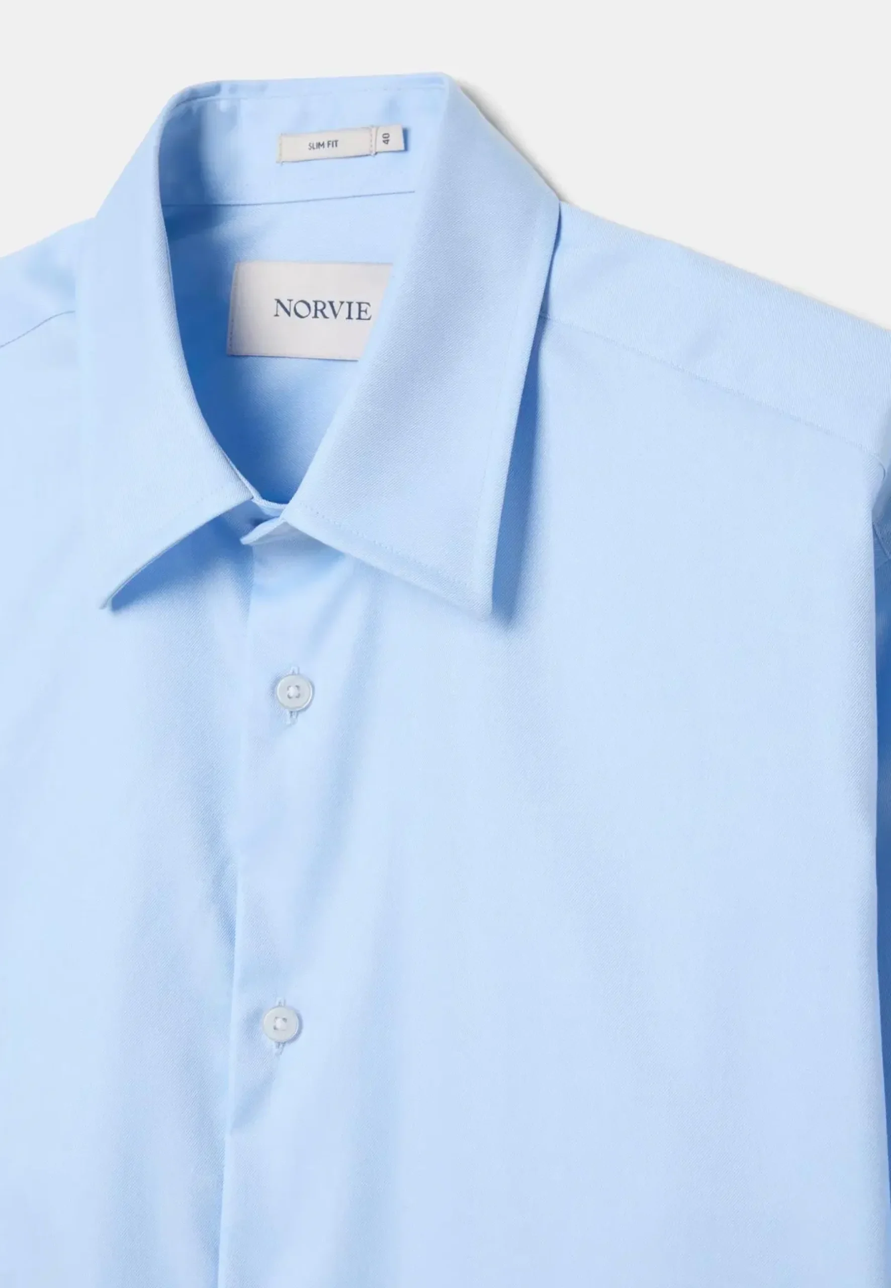 SIMON on twillkudottu puuvillapaita, jossa on slim fit -mitoitus. Laadukas materiaali ja ylellinen viimeistely tekevät siitä täydellisen kauluspaitavalinnan puvun kanssa käytettäväksi. Paidassa on klassinen kaulus, sävysävyyn sointuvat napit sekä napit hihansuissa. Puuvilla on käsitelty helpommin silitettäväksi, mikä tekee paidasta käytännöllisen ja huolitellun valinnan arkeen ja juhlaan.