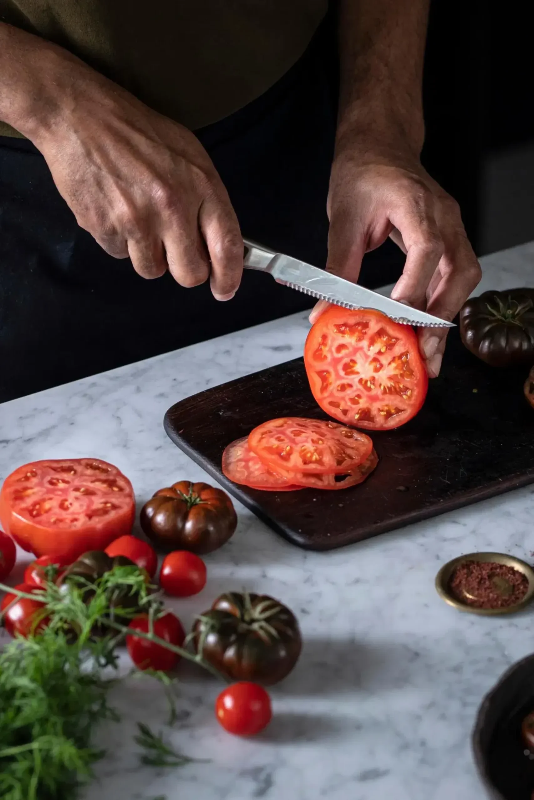 Tomaattiveitsi on valmistettu kestävästä japanilaisesta hiiliteräksestä, ja sen saumaton, valettu runko on tyylikäs ja ajaton. Täydellinen tasapaino tekee leikkaamisesta mukavaa ja luontevaa. Suositellaan pestäväksi käsin. Suunniteltu Suomessa.