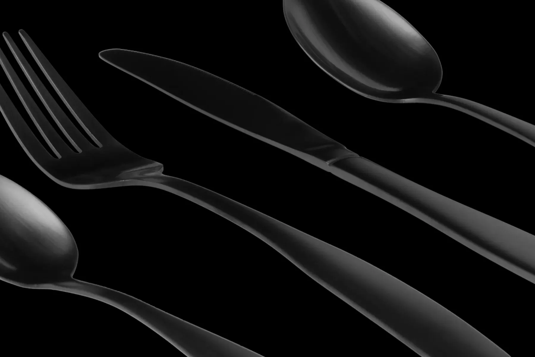 Tyylikkäät mattamustat ruokailuvälineet tuovat kattaukseen uutta, rohkeaa ilmettä. Valmistettu ruostumattomasta teräksestä, mattamusta PVD-pinnoite. Pakkaus sisältää 4 x Veitsi 22,5 cm, 4 x haarukka 19,8 cm, 4 x ruokalusikka 18,5 cm, 4 x teelusikka 13,8 cm. Konepesun kestävä.